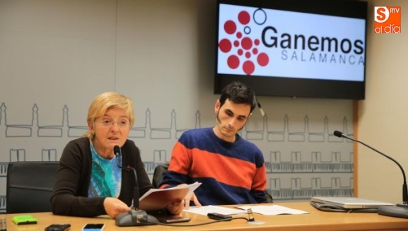 La concejala de Ganemos Salamanca Pilar Moreno, junto a Rodrigo Santamaría, de Informática de