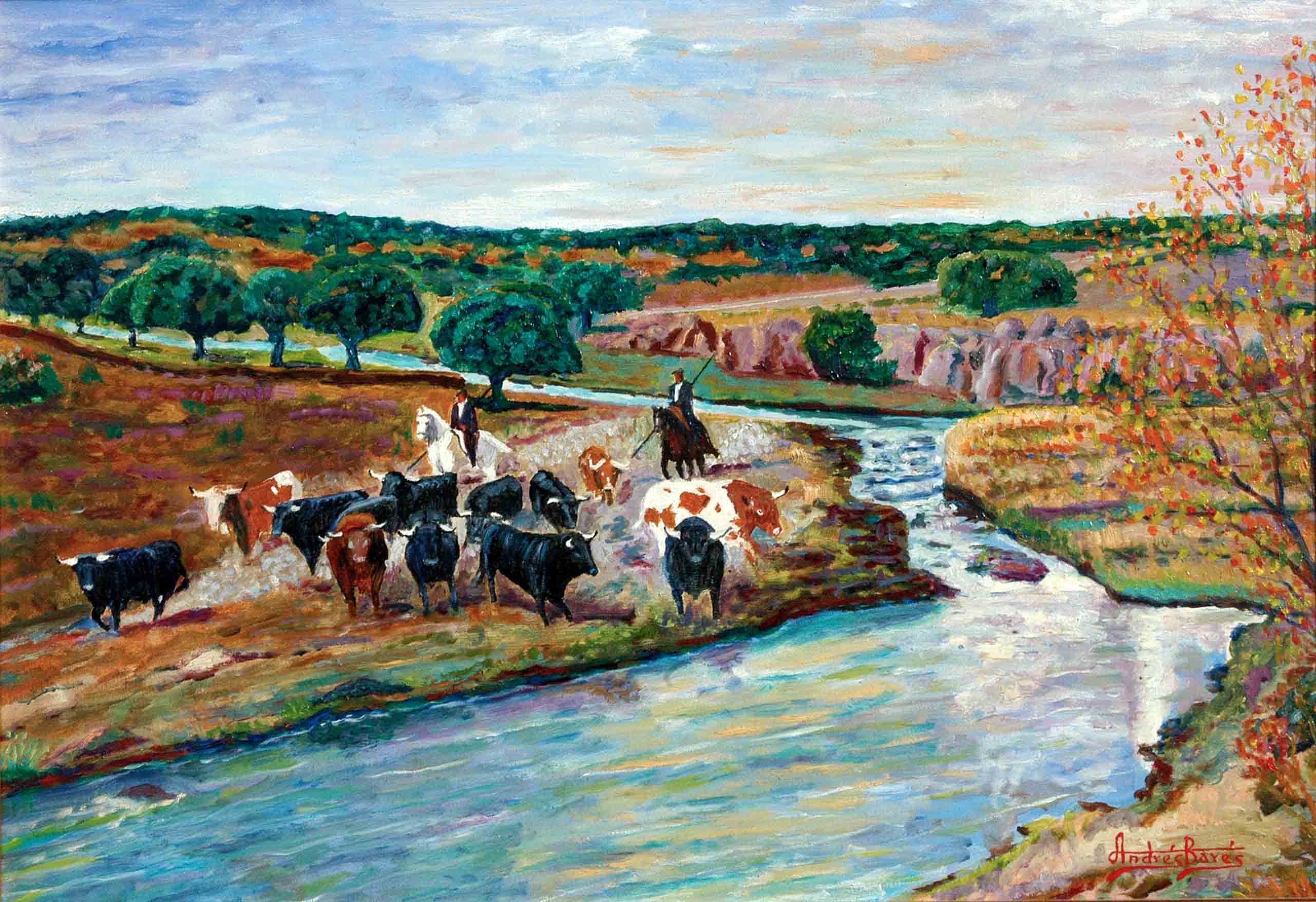 Bravos en el Campo Charro, óleo de Andrés Barés