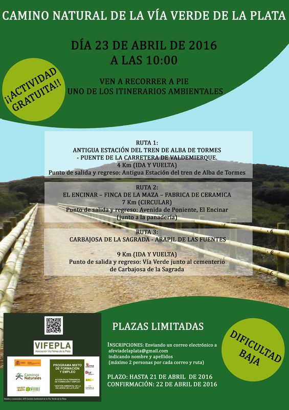 La Asociación Vía Verde de la Plata, a través de la Acción de Formación y Empleo sobre 'Gestión Ambiental', ha organizado para el próximo sábado, 23 de abril, tres rutas guiadas con el fin de que aquél que así lo desee pueda conocer el camino natural entre Carbajosa de la Sagrada y Alba de Tormes.