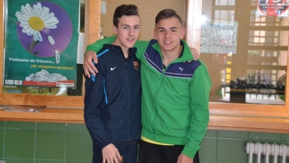 Cualquier instante puede ser bueno para una foto, como por ejemplo cuando estos dos alumnos del IES Fray Diego Tadeo se acercaron en un momento de la mañana del miércoles a la Conserjería de su Instituto. Aprovechando la visita de los alumnos del IES Río Cuerpo de Hombre de Béjar, ellos también quisieron salir en una foto.