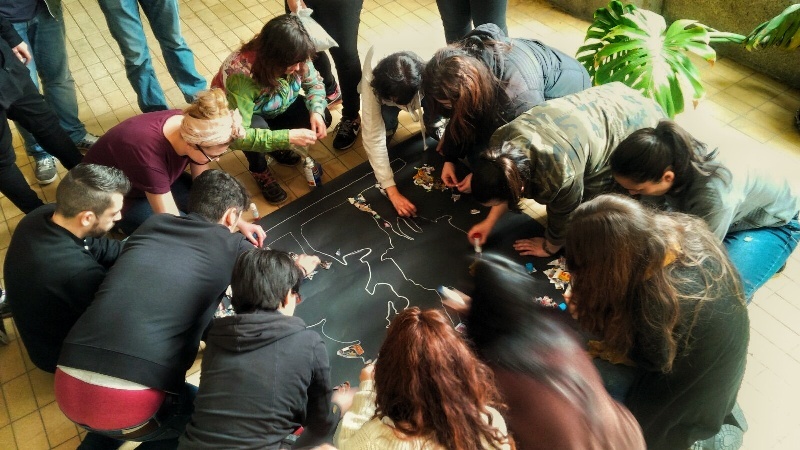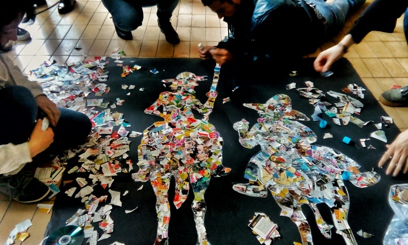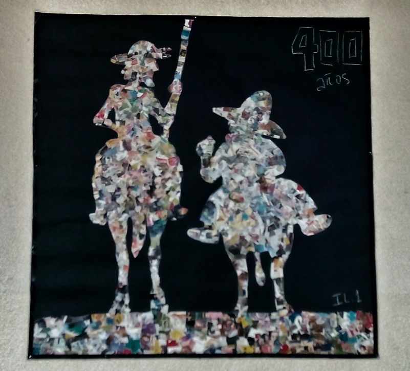 Alumnos de Imagen y Sonido han realizado un espectacular collage de dos metros con una imagen de Don Quijote y Sancho Panza