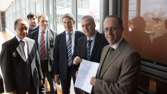A la entrega del convenio, celebrada en Würzburg, asistieron el decano de la Facultad de Ciencias de la Universidad de Salamanca, José Miguel Mateos Roco, Stefan Köhler, CEO de Fa. Infosim, Phuoc Tran-Gia, vicerrector de la Universidad de Würzburg, y el miembro del Parlamento Oliver Joerg.