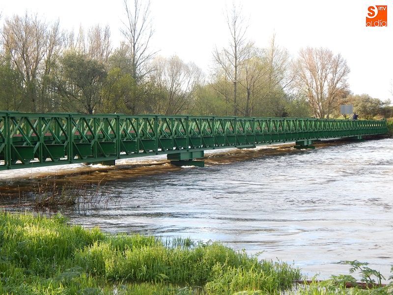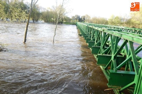 Las continuas lluvias de las jornadas del martes y el miércoles han traído nuevas crecidas del caudal de los ríos, y en el concreto del Tormes y que esta madrugada se ha desbordado a su paso por Almenara de Tormes. Las lluvias no han cesado y, como prueba, la imagen del puente de hierro, cuya estructura inferior (los ojos de hierro del puente) el agua ha ocultado, al tiempo que ha inundado sus orillas y parte de la carretera que une este municipio con el de Pino de Tormes y Zarapicos. Corte de tráfico por motivos de seguridad, acordado por los ayuntamientos de los tres municipios (integrantes de la Comunidad de Usuarios del Puente), y que mantendrá hasta que baje el caudal.