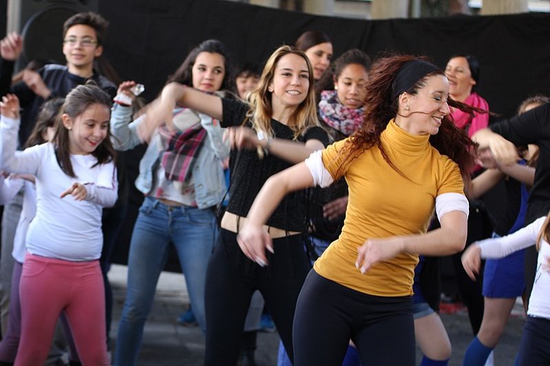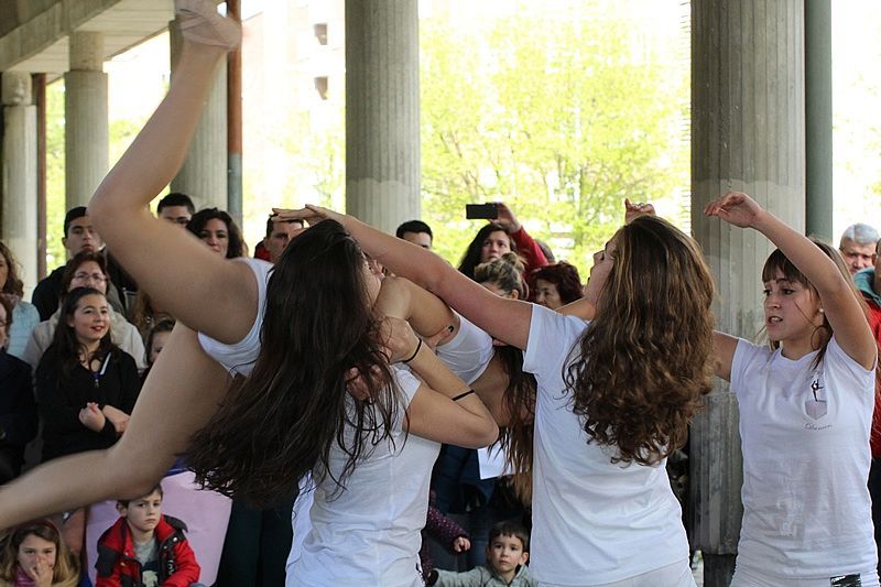 Un día hermoso. De la Plaza Mayor a la de Barcelona, de los libros a la danza, de la palabra al baile. Los diferentes grupos de la escuela 'Alborea' inundaron de ritmo el barrio de Garrido con una exhibición de baile