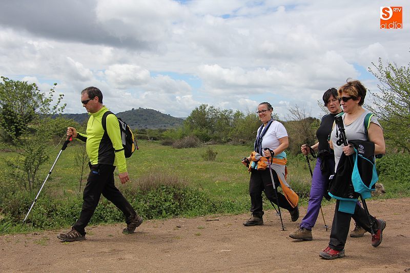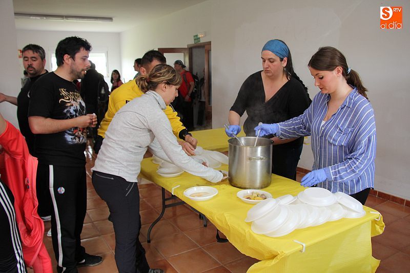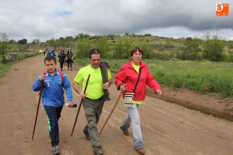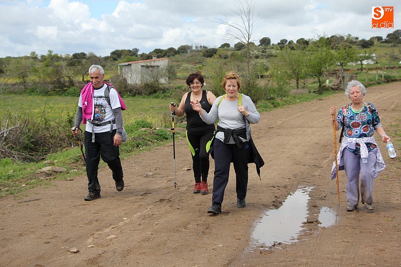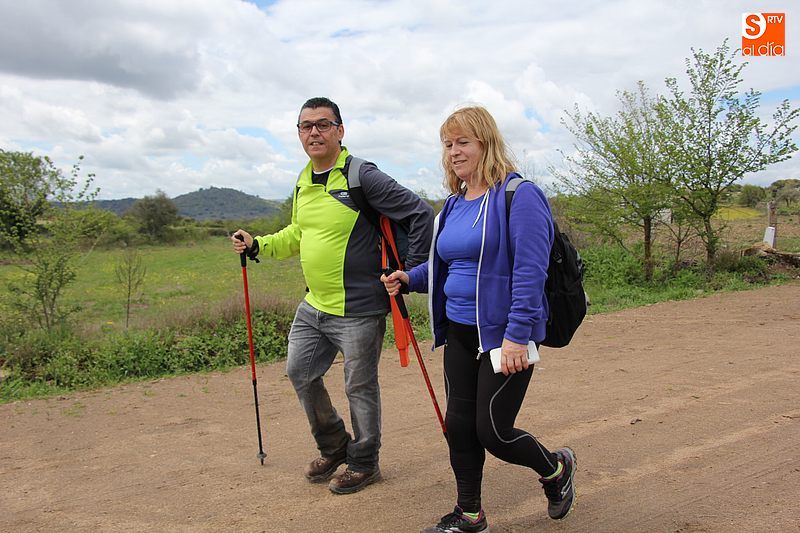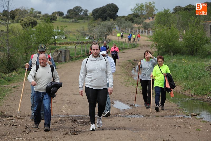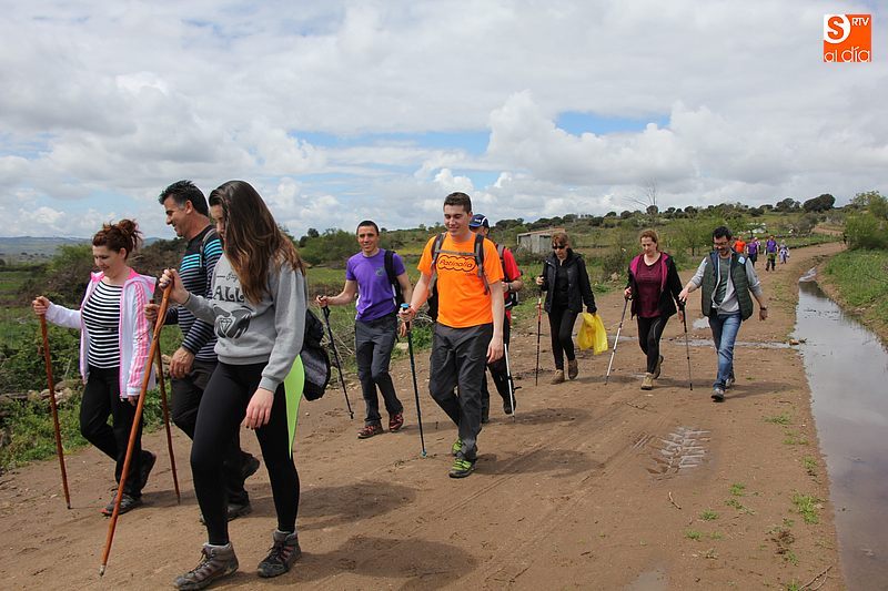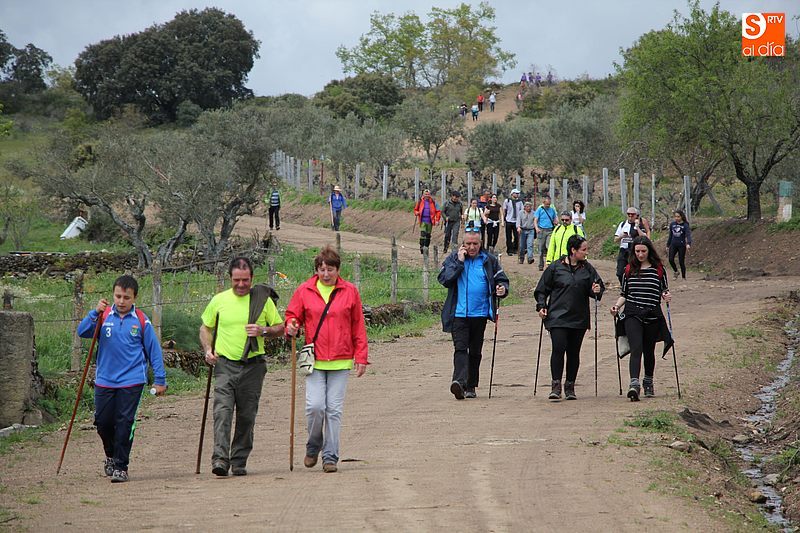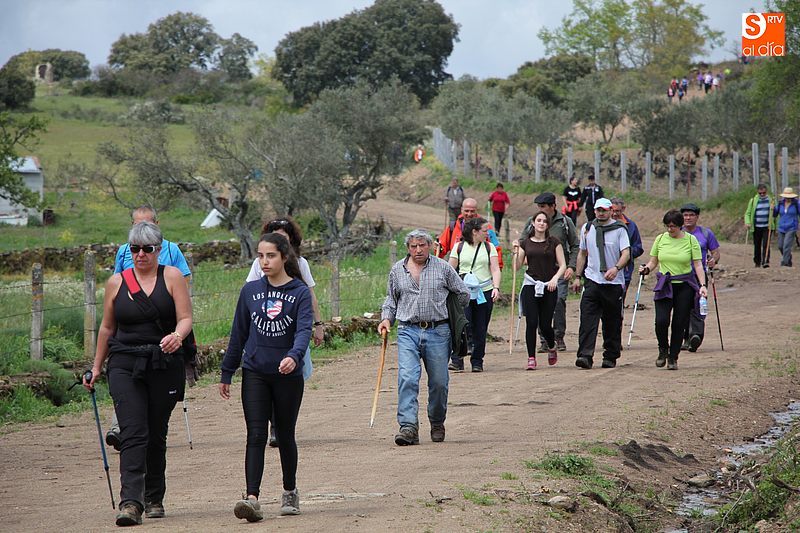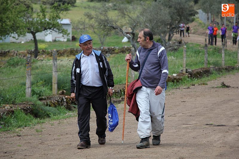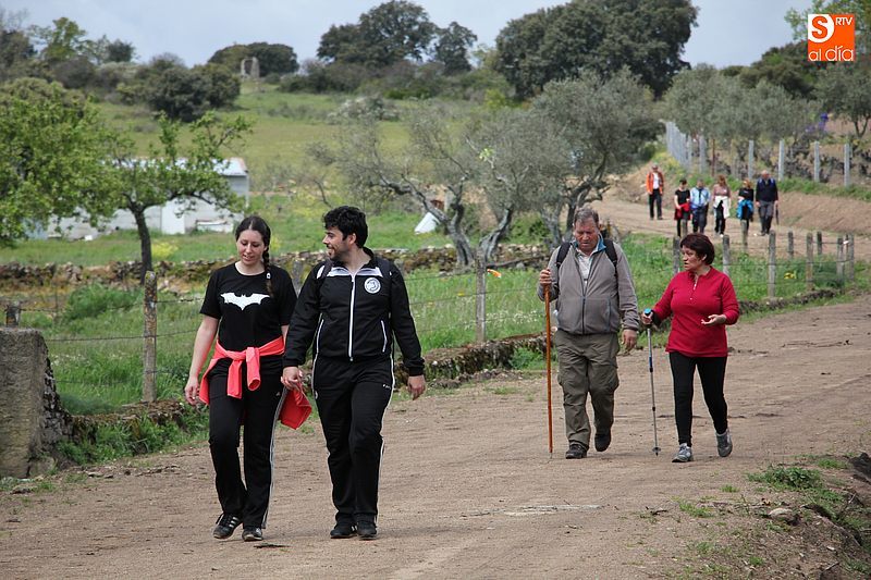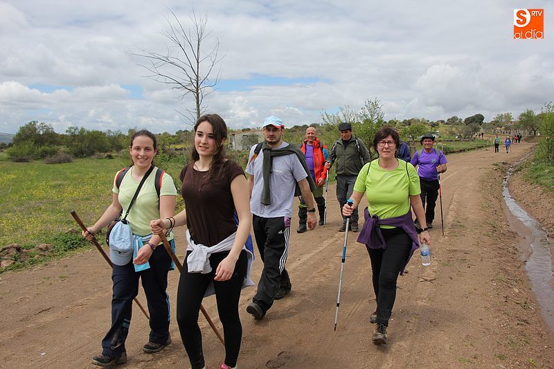Pasadas las nueve de la mañana los senderistas comenzaban a agruparse en la plaza del Ayuntamiento para coger el ticket de la comida, otros para formalizar la inscripción y todos para recibir una curiosa bolsa conmemorativa de esta edición de la marcha. Así, los senderistas comenzaban los 10 kilómetros del recorrido pasadas las 9.30 horas dirección hacia los Rosales, para continuar por Valdollero y rodear el teso de la ermita para salir por el Cuarto del Sol y el Picón de la Tabla. El último tramo atravesaba el paraje de las Vicarías hasta alcanzar el camping, donde darían cuenta de la comida en el edificio multiusos, ensalada mixta y patatas con costilla preparadas por las cocinas del camping y de El Legado de Enrique.