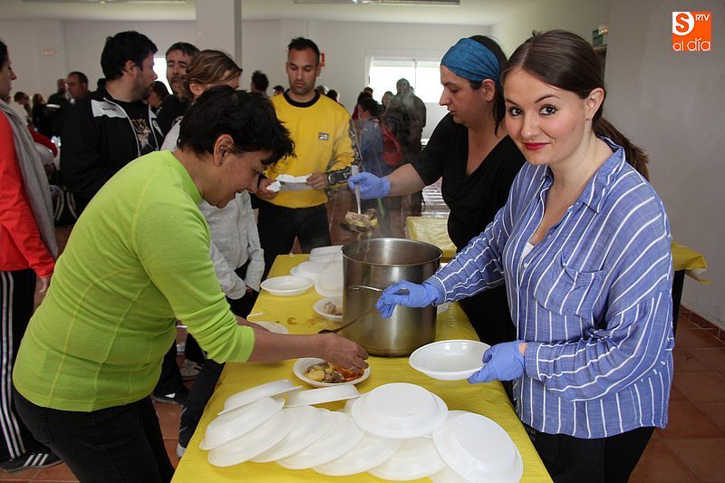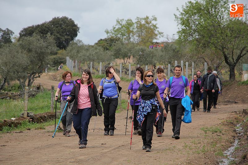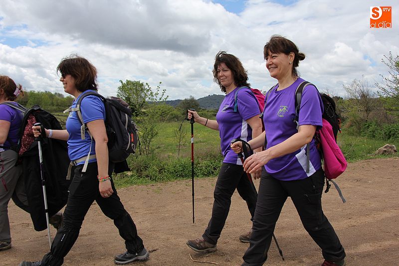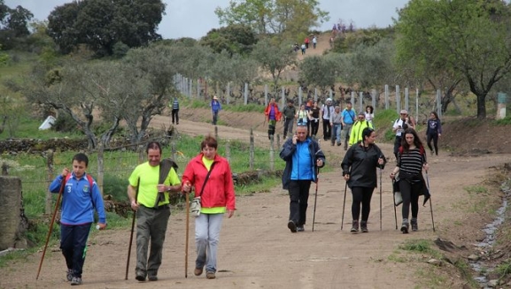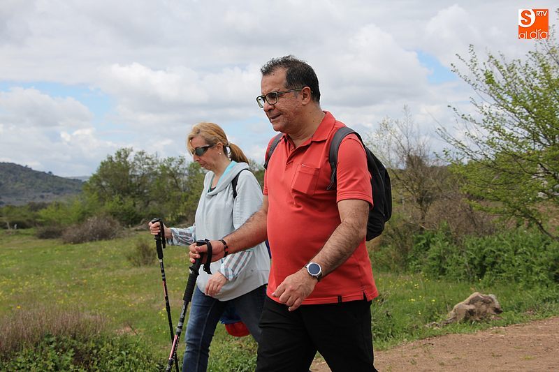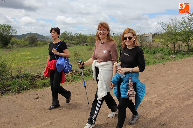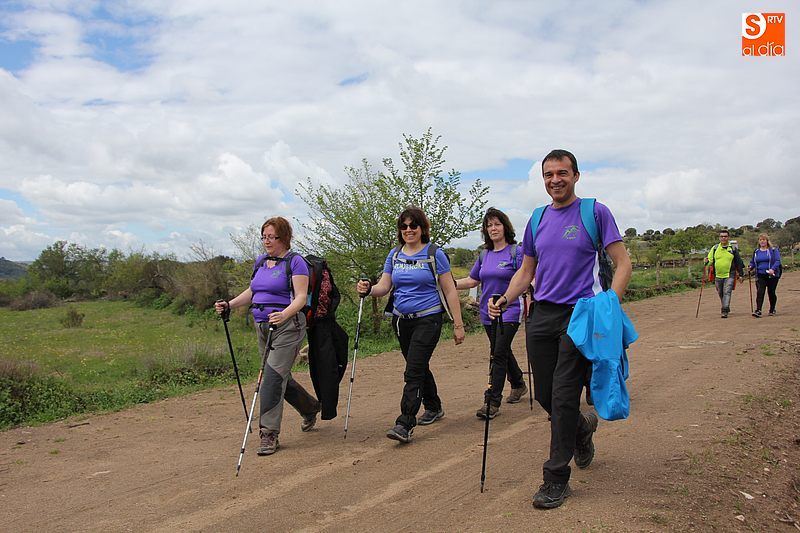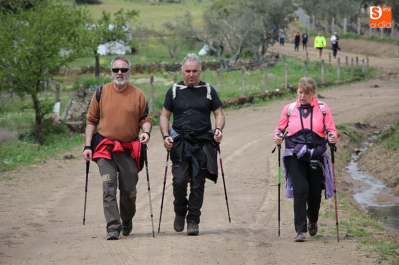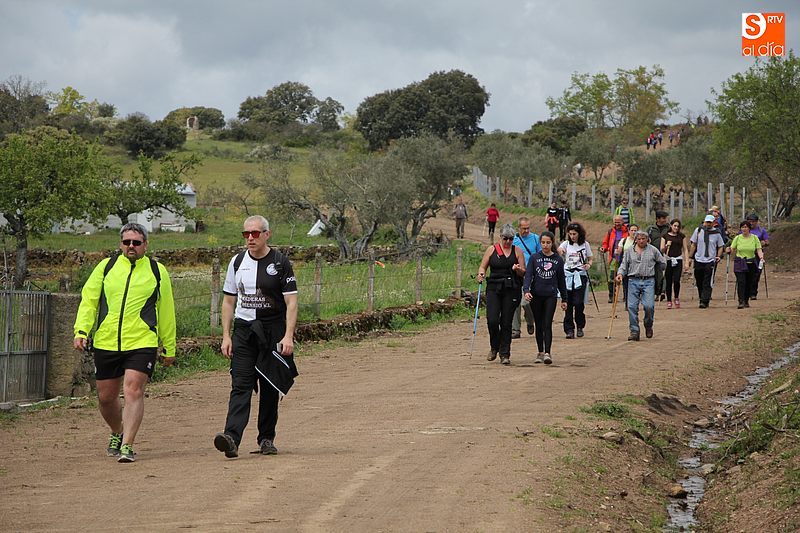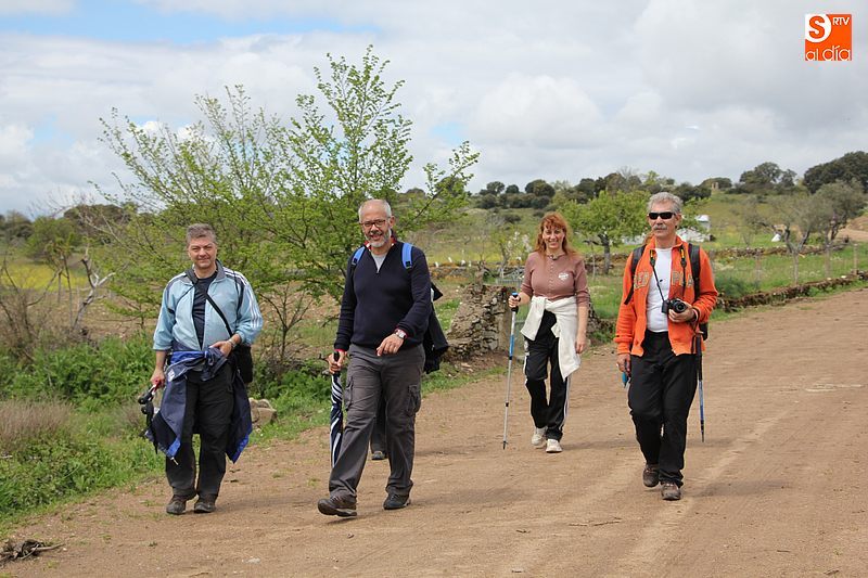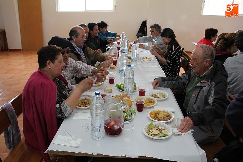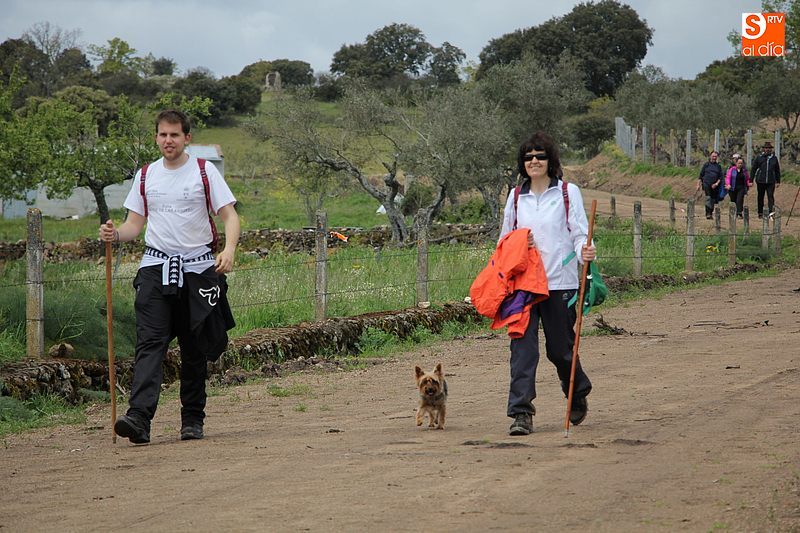 Pasadas las nueve de la mañana los senderistas comenzaban a agruparse en la plaza del Ayuntamiento para coger el ticket de la comida, otros para formalizar la inscripción y todos para recibir una curiosa bolsa conmemorativa de esta edición de la marcha. Así, los senderistas comenzaban los 10 kilómetros del recorrido pasadas las 9.30 horas dirección hacia los Rosales, para continuar por Valdollero y rodear el teso de la ermita para salir por el Cuarto del Sol y el Picón de la Tabla. El último tramo atravesaba el paraje de las Vicarías hasta alcanzar el camping, donde darían cuenta de la comida en el edificio multiusos, ensalada mixta y patatas con costilla preparadas por las cocinas del camping y de El Legado de Enrique.