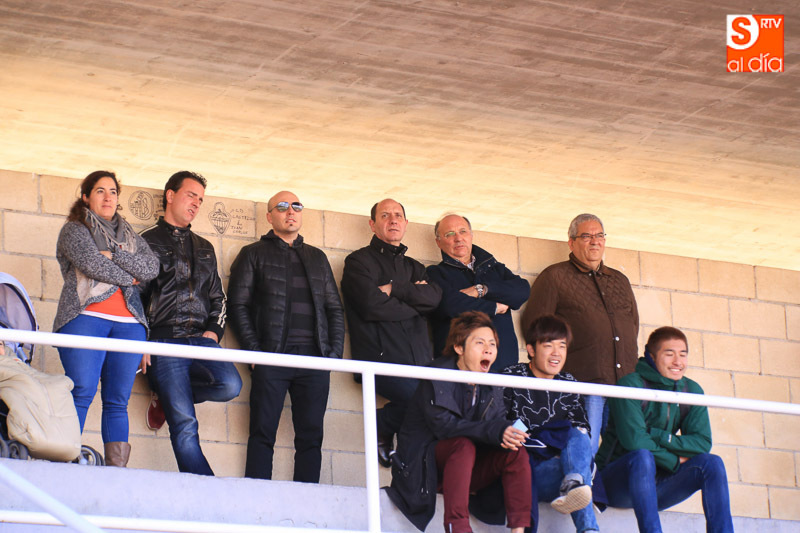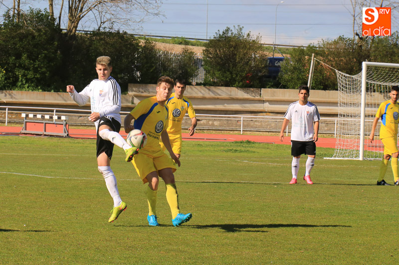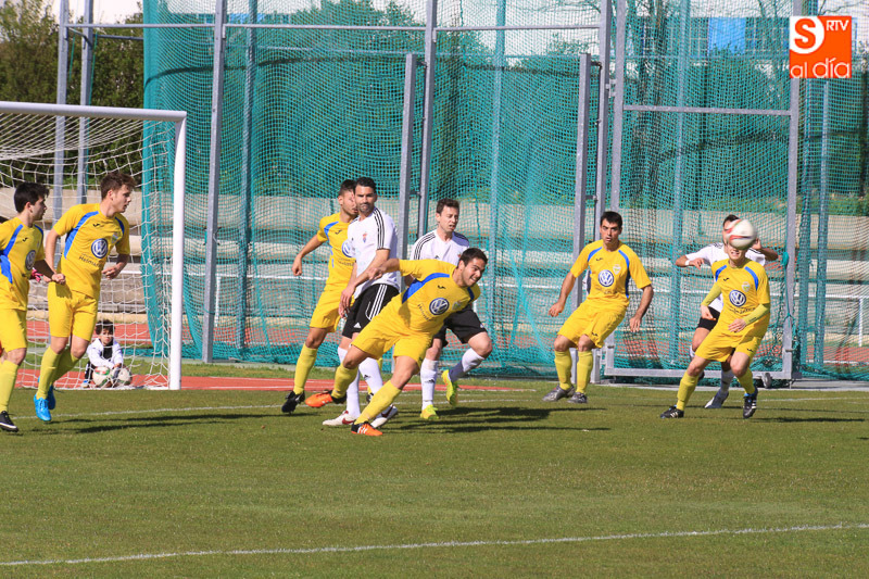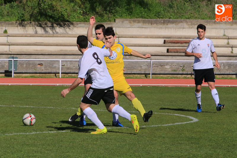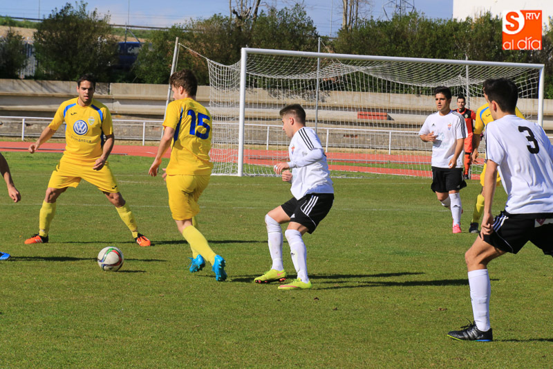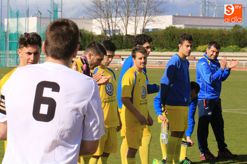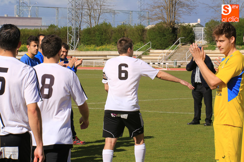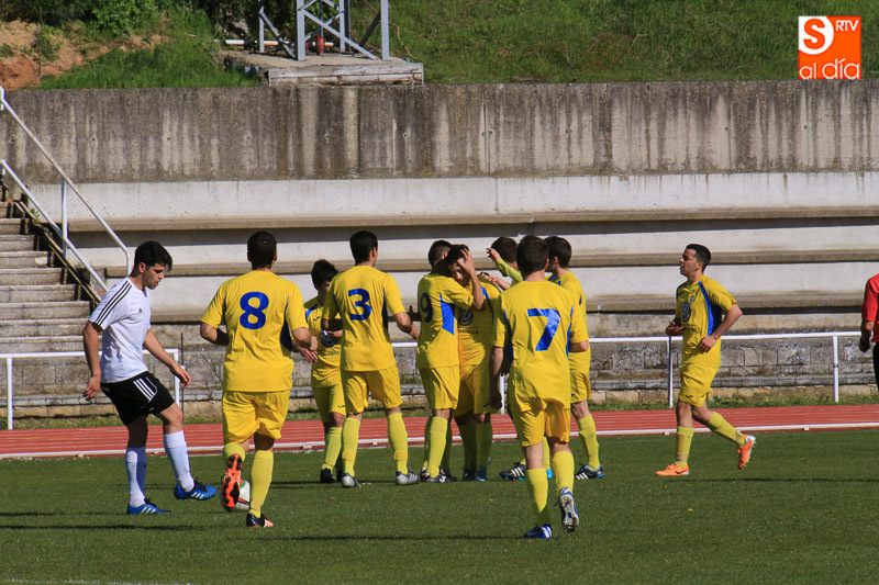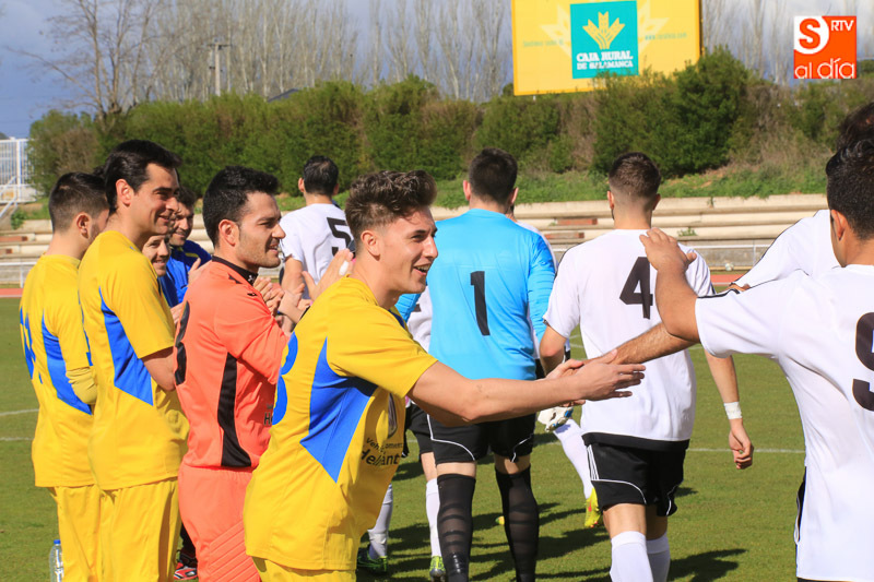 Despu de haber logrado la pasada semana el ascenso a la Regional de Aficionados, el Salmantino recibía esta tarde a otro histórico del fútbol charro, el Real Salamanca Monterrey, que partía también a principios de temporada como uno de los grandes favoritos al ascenso, pero que ha cuajado una temporada más bien irregular. Sin embargo, ni uno ni otro equipo quería cerrar la temporada sin más y unos, por demostrar a su afición que no iba a haber relajación, y otros por cerrar la temporada lo más arriba posible, saltaron al campo con ganas de jugar al fútbol y agradar. El partido comenzó con un dominio importante del cuadro local que, ya en el minuto 7 se ponía por delante tras un buen remate de David Hernández a un saque de esquina botado por Sergio Alba.