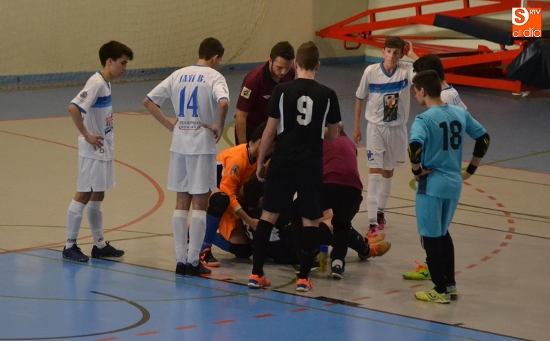 Tras estar parado el partido unos instantes por esa lesión, el final del primer tiempo fue un poco diferente, con el FS Salamanca mirando más arriba, teniendo otro par de buenas intentonas (Adrián salvó en el 19' un remate a bocajarro frente a él dentro del área). La primera parte concluyó con otra intentona lejana de Álex Morales tras robar el balón que el guardameta envió a córner por bajo.