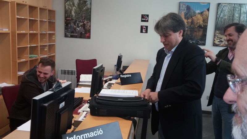 La Asociación Salvar el Archivo de Salamanca ha hecho entrega esta mediodía de más de 32.000 firmas, recogidas a través de la asociación cívica HazteOir.org, en el Registro del Departamento de Presidencia de la Generalitat de Cataluña.