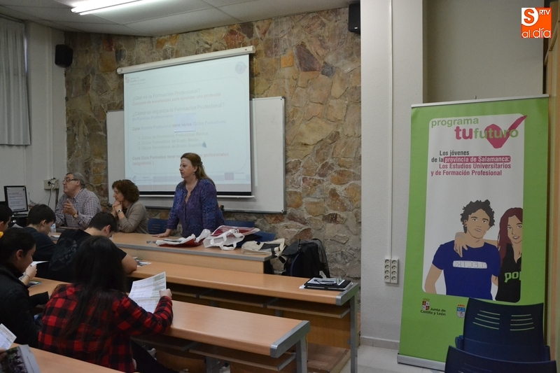 En este caso, fue turno para que los alumnos de 4º de la ESO, Ciclos Formativos, Formación Profesional Básica y Bachillerato recibieran sesiones del programa Tu Futuro, que impulsan la Diputación Provincial, la Dirección Provincial de Educación y la Universidad de Salamanca.