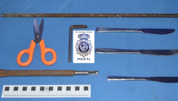 Tenía en su poder una barra de ferralla, un cortafríos de martillo percutor, una llave alen, unas tijeras de electricista y tres cuchillos de cocina