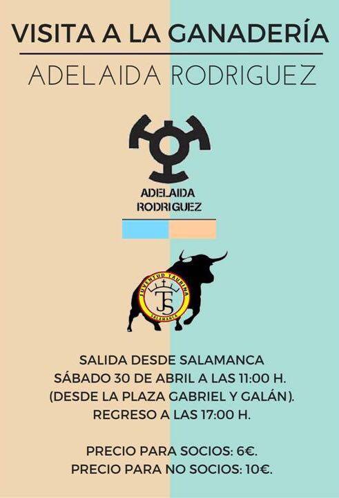 Juventud Taurina de Salamanca organizó el pasado 16 de abril su segunda visita a la finca El Zarzosillo, donde pastan los toros de la ganadería Adelaida Rodríguez, sin embargo, debido al temporal, fue suspendida retrasando dicha actividad para este sábado, 30 de abril.