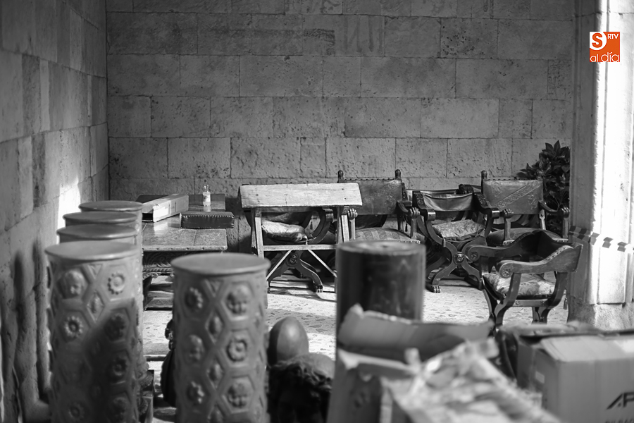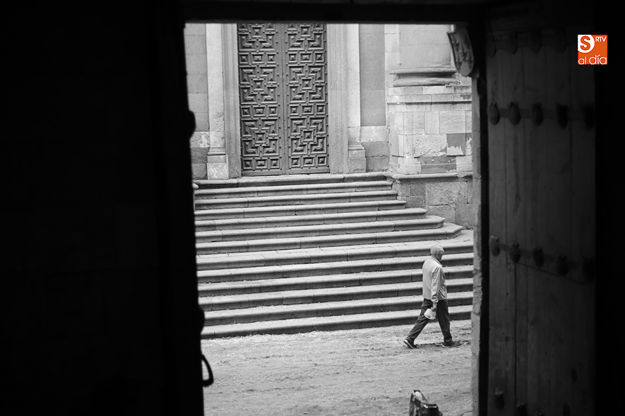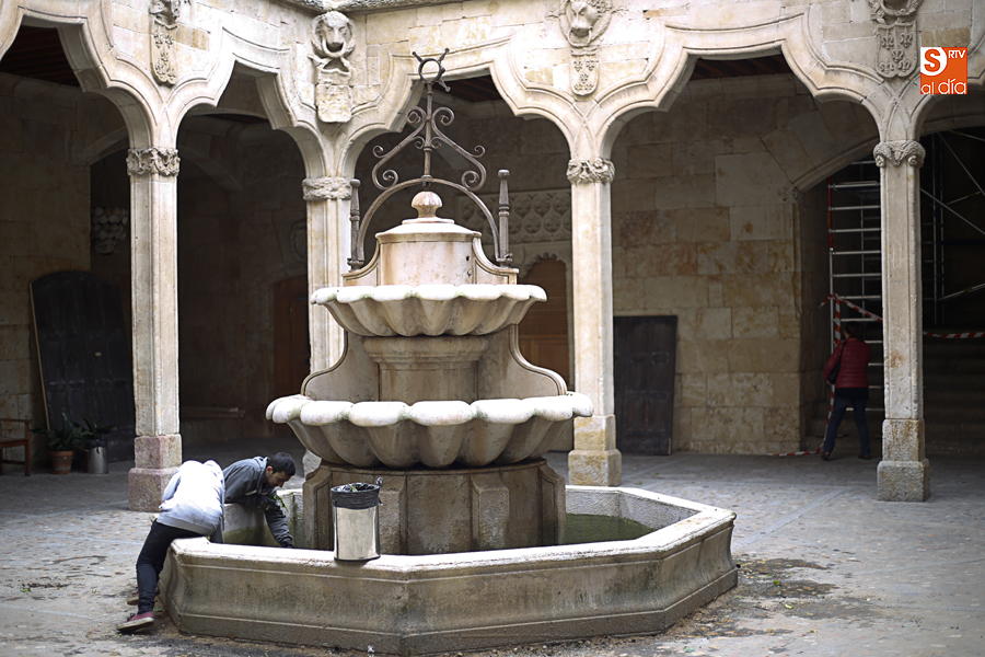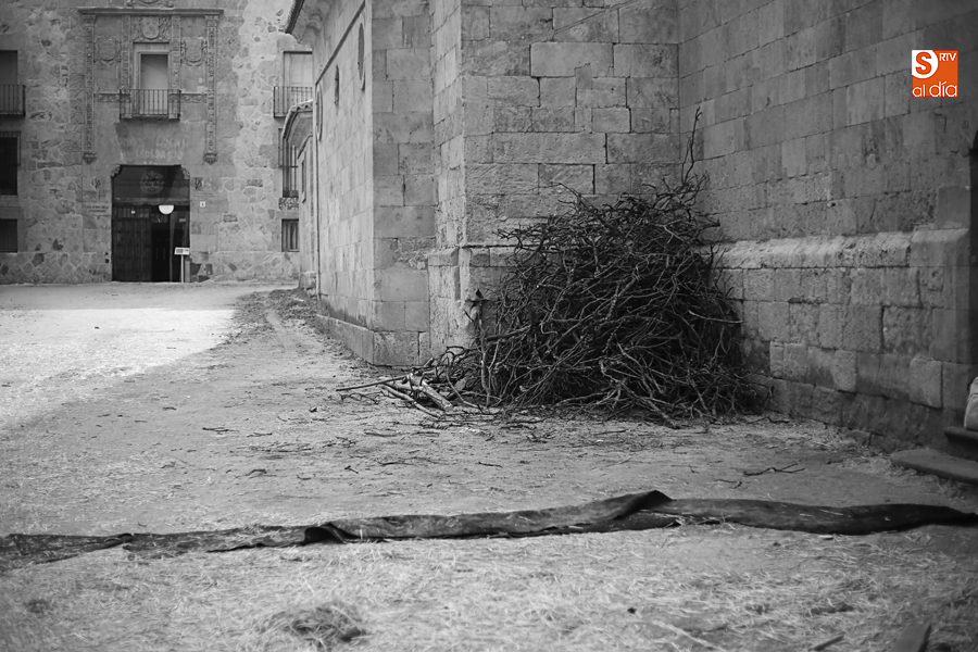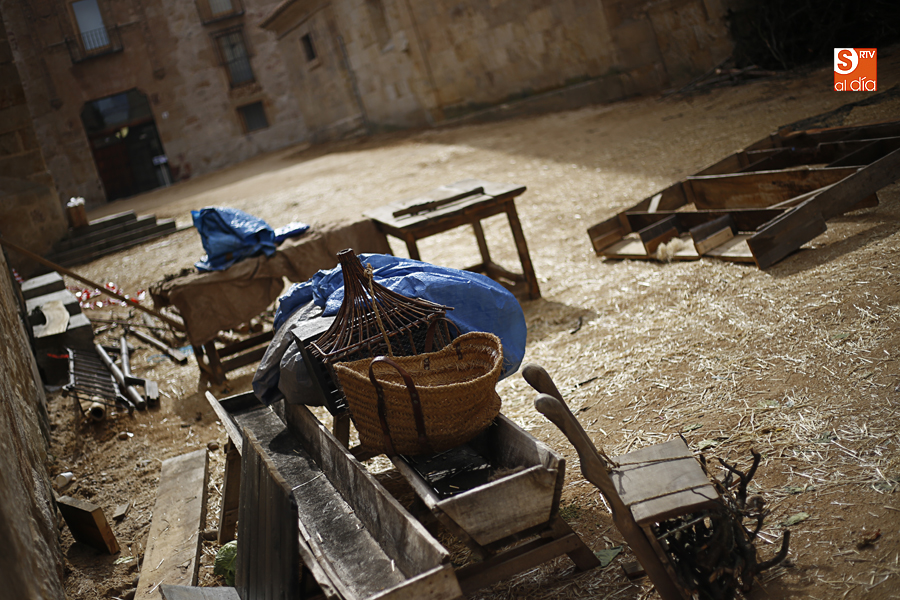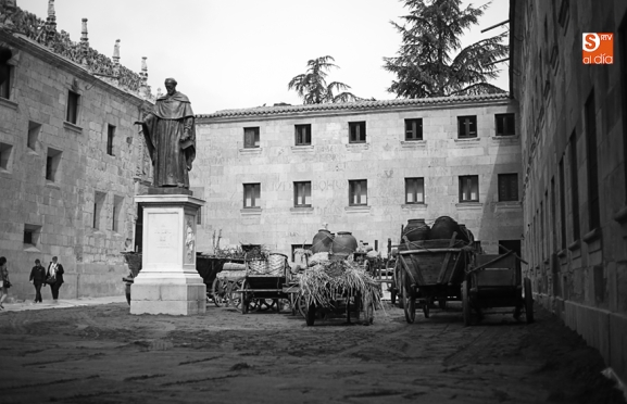 Tras las escenas rodadas en la calle Compañía, ahora es el Patio de Escuelas donde la productora está "vistiendo" de época este espacio, junto al Edificio Histórico de la Universidad de Salamanca, con una gran capa de tierra que ayudará a ambientar la emblemática plaza.