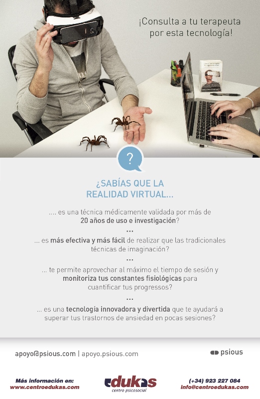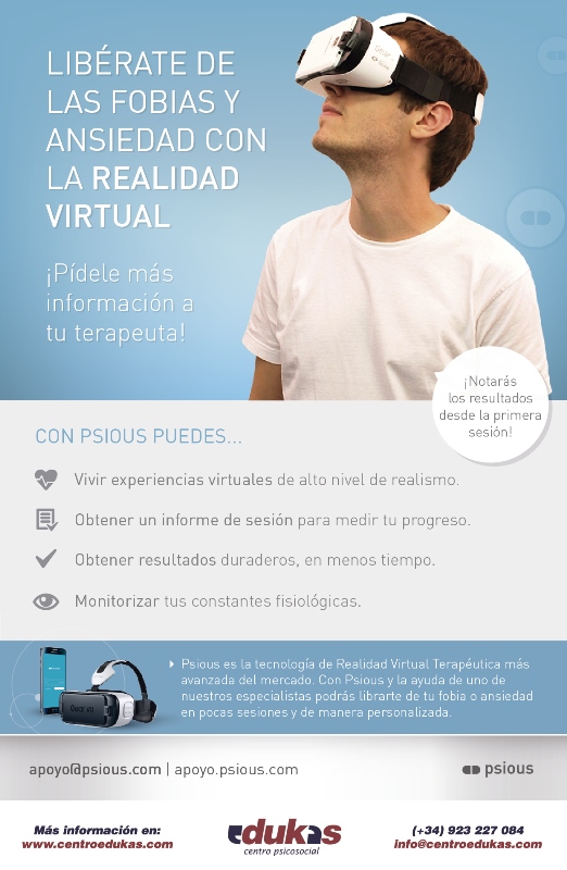 El Centro Edukas Psicosocial empresa salmantina pionera en la innovación y nuevas tecnologías en el área del Trabajo Social, incorporó la Realidad Virtual como uno de los servicios para la salud mental con el objetivo de mejorar las terapias de ansiedad y de otros trastornos mentales.