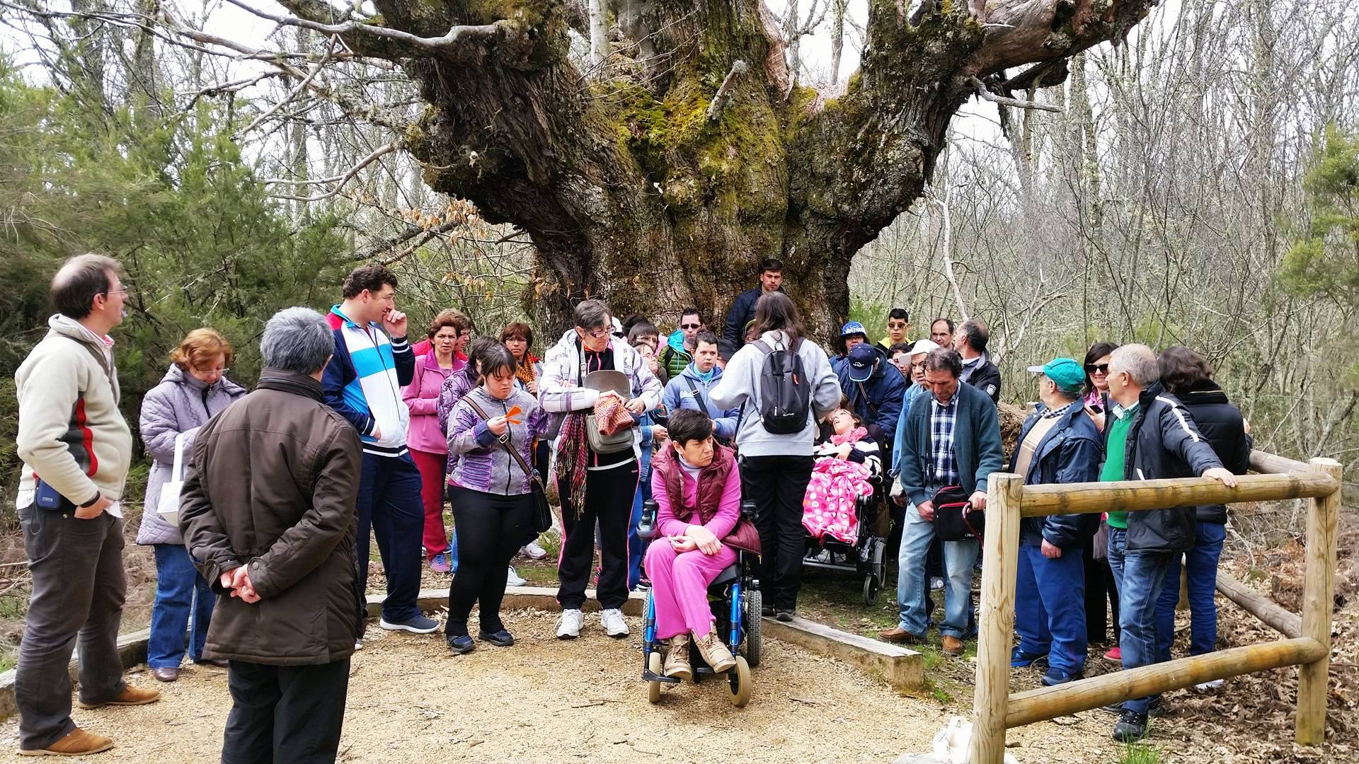 Como actividad previa a este evento senderista y medioambiental, y poniendo en práctica real la accesibilidad de estos senderos, en la mañana de este viernes medio centenar de miembros de la asociación Asprodes Feaps Salamanca se han puesto en marcha y han conocido la Ruta de los Castaños Centenarios, en El Casarito.
