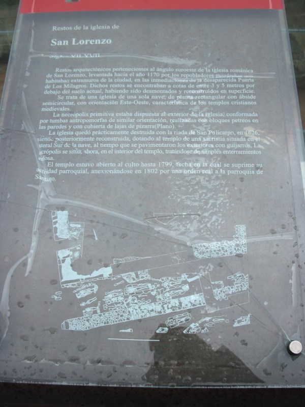 Ciudadanos por la Defensa del Patrimonio tres meses después ha vuelto a solicitar que se retire la vegetación que acompaña a los restos de la Iglesia de San Lorenzo, los cuáles padecen la influencia de las temperaturas y la humedad. También se ha invitado a que se estudie la conveniencia de mantenerlos en un lugar apropiado en el cual se garantice su conservación (también en condiciones dignas) y su difusión.