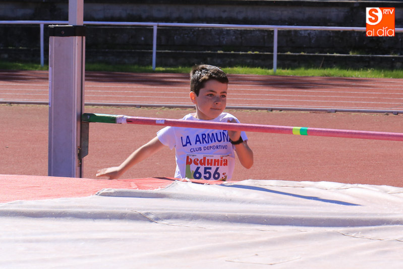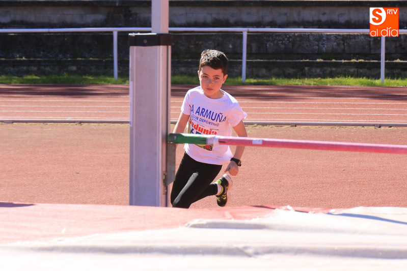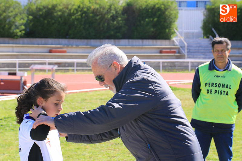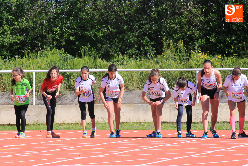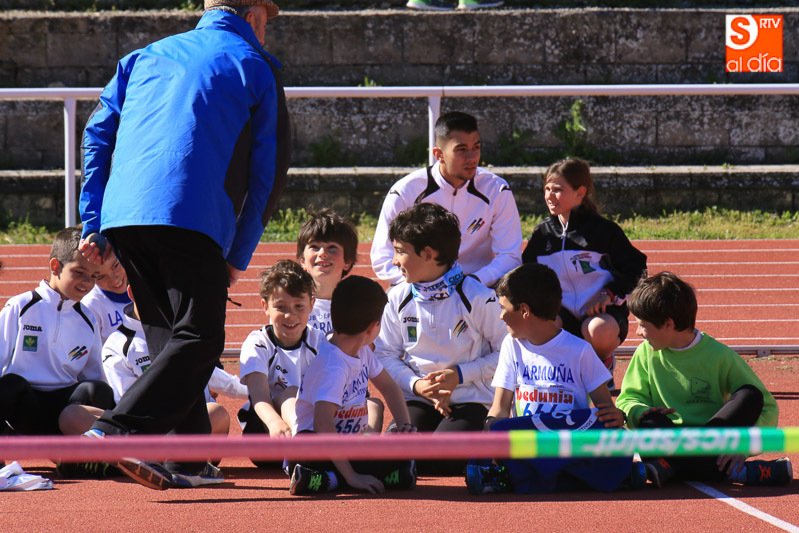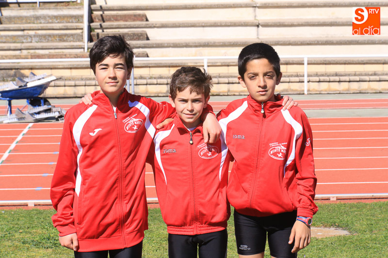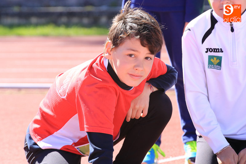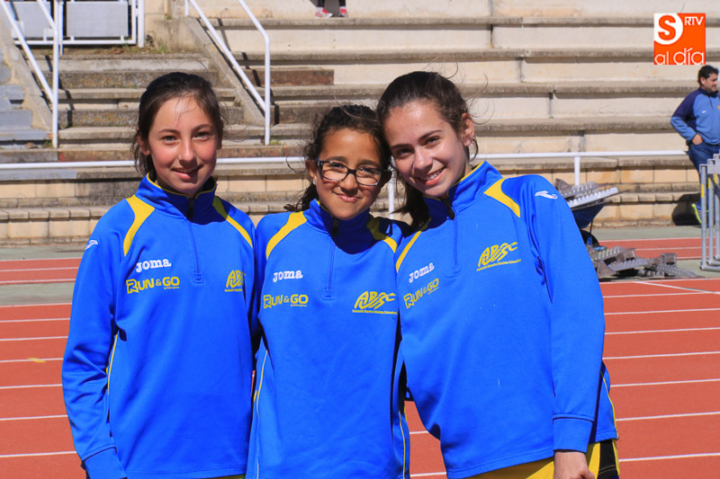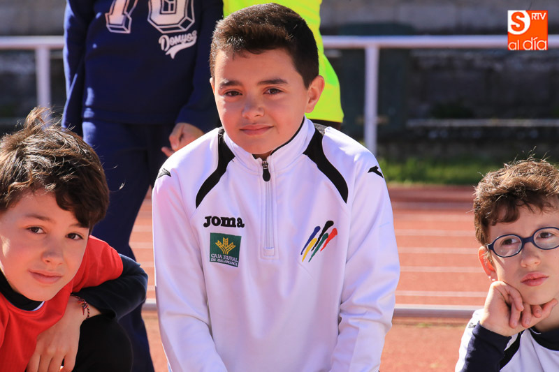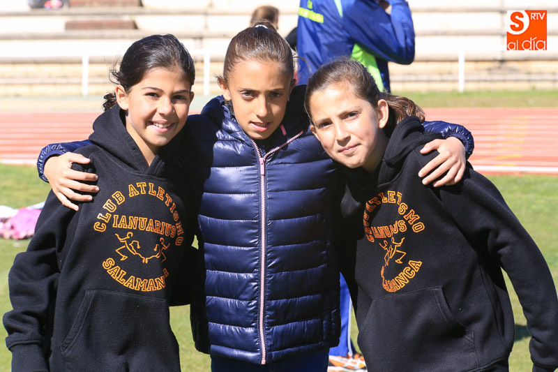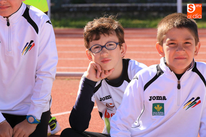 Han sido más de 300 niños y niñas representantes de los clubes, ayuntamientos y centros escolares salmantinos, de las categorías benjamín, alevín, infantil y cadete, los que se han dado cita esta mañana desde las 10:30h hasta las 14:00, para la disputa de las 24 pruebas programadas de las especialidades de velocidad, medio fondo, vallas, saltos, lanzamientos y el reparto de las 72 medallas que se otorgaban a los tres primeros clasificados de cada una de las pruebas celebradas.