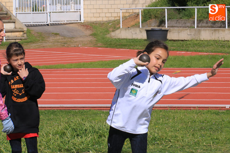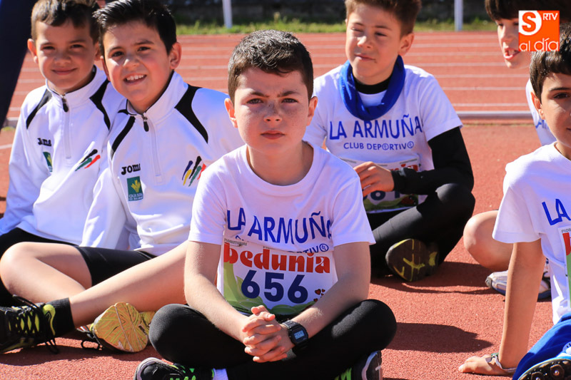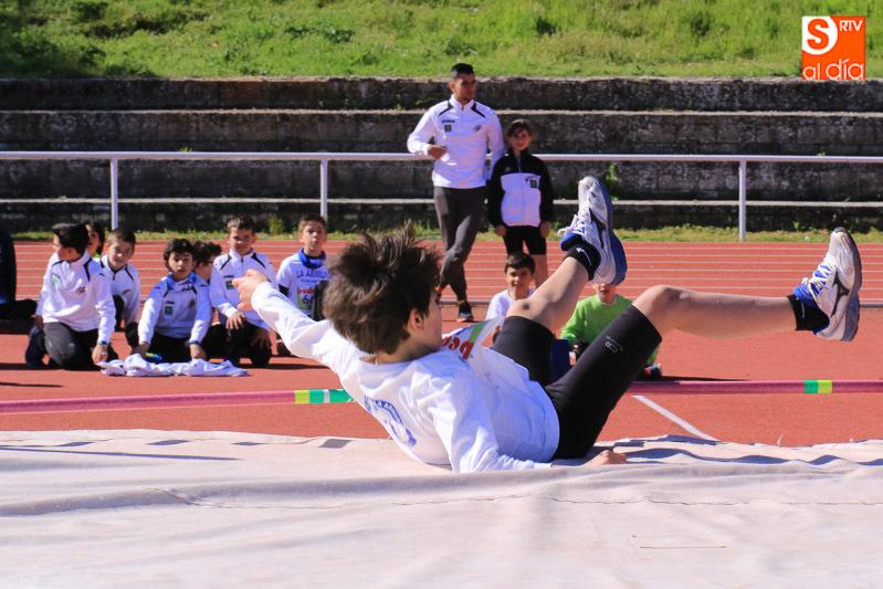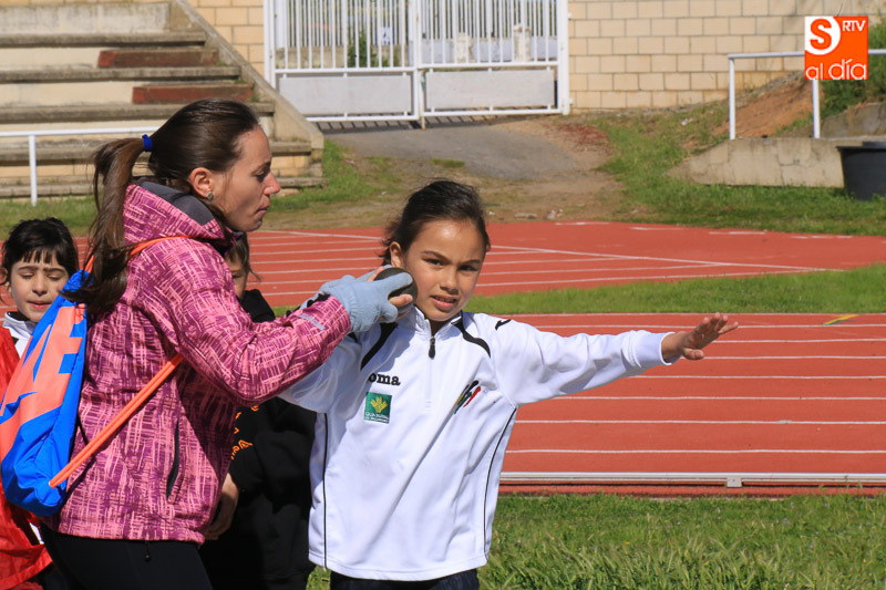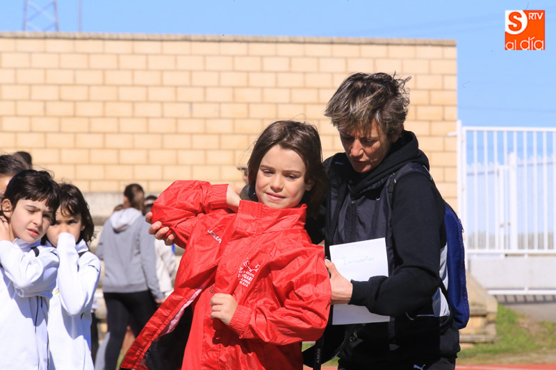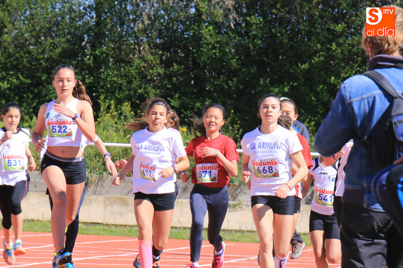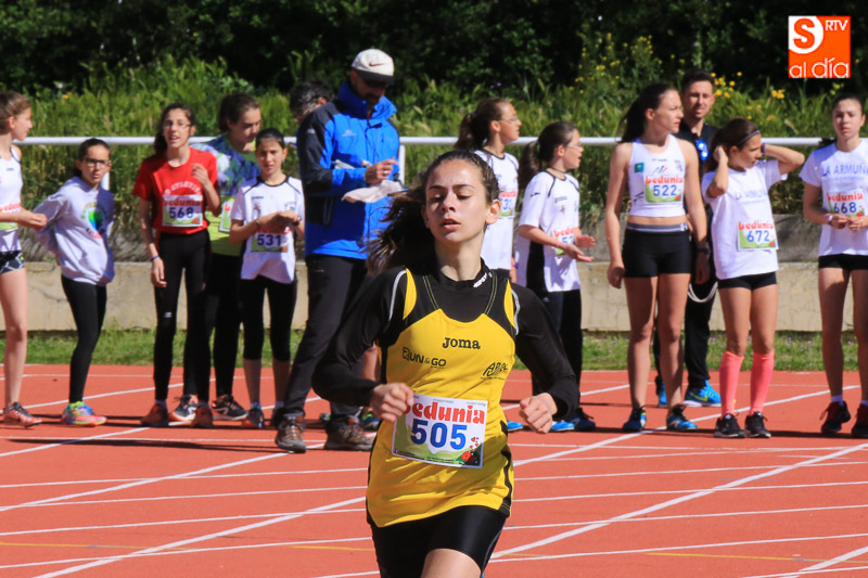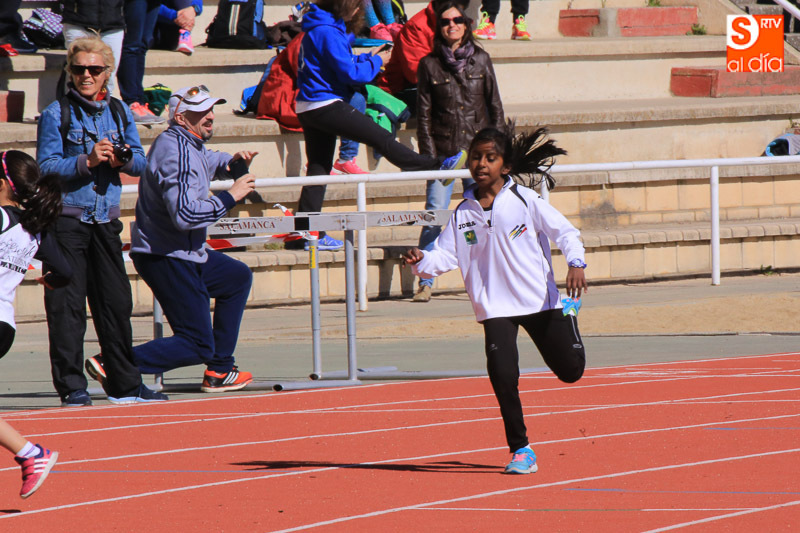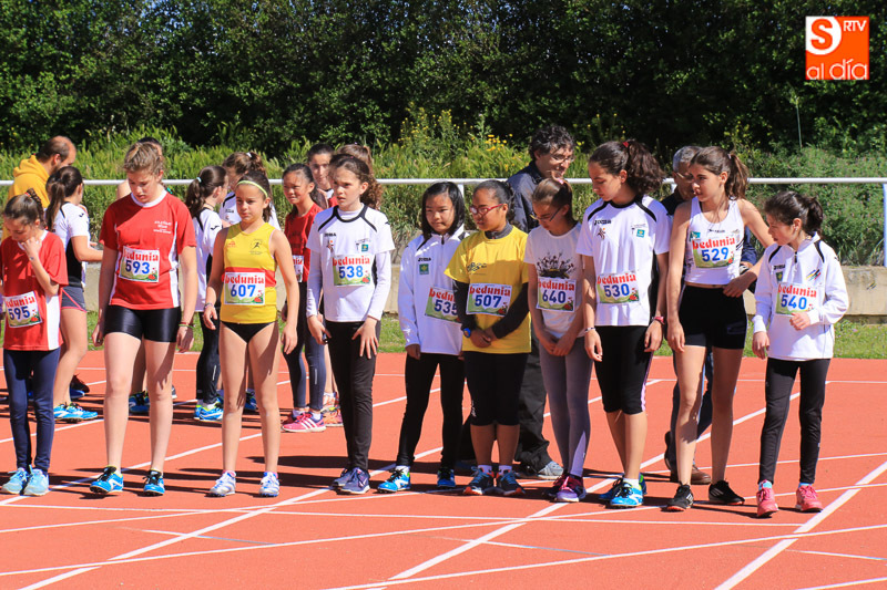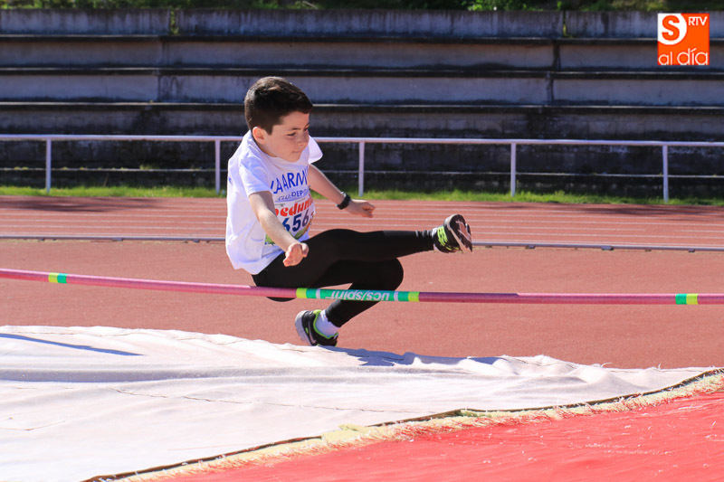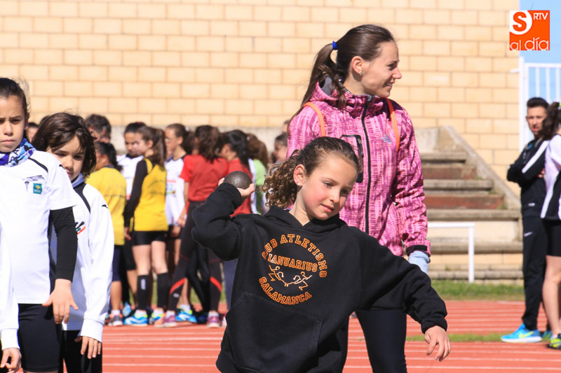 Han sido más de 300 niños y niñas representantes de los clubes, ayuntamientos y centros escolares salmantinos, de las categorías benjamín, alevín, infantil y cadete, los que se han dado cita esta mañana desde las 10:30h hasta las 14:00, para la disputa de las 24 pruebas programadas de las especialidades de velocidad, medio fondo, vallas, saltos, lanzamientos y el reparto de las 72 medallas que se otorgaban a los tres primeros clasificados de cada una de las pruebas celebradas.