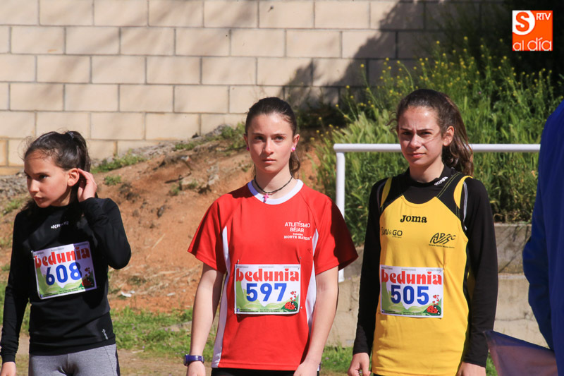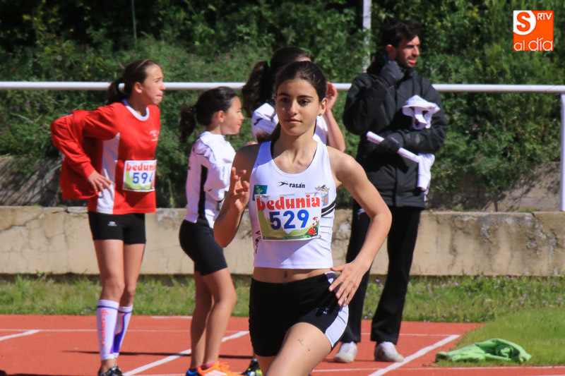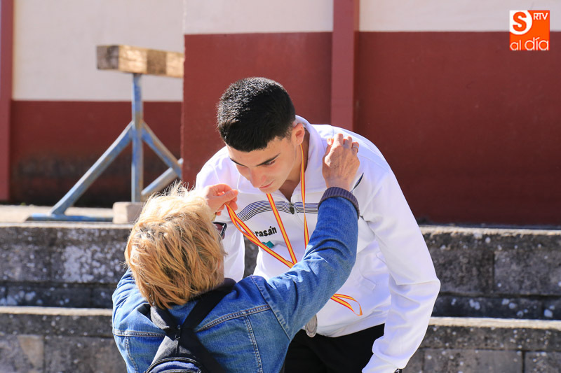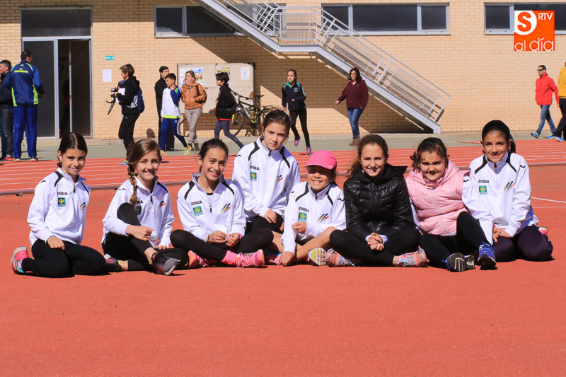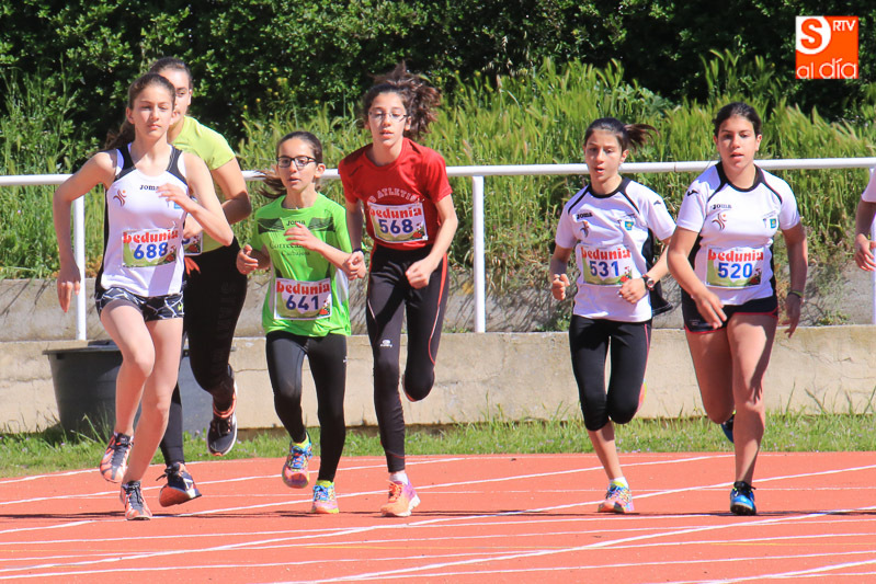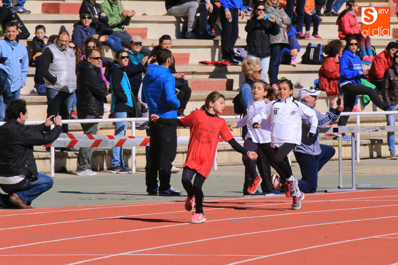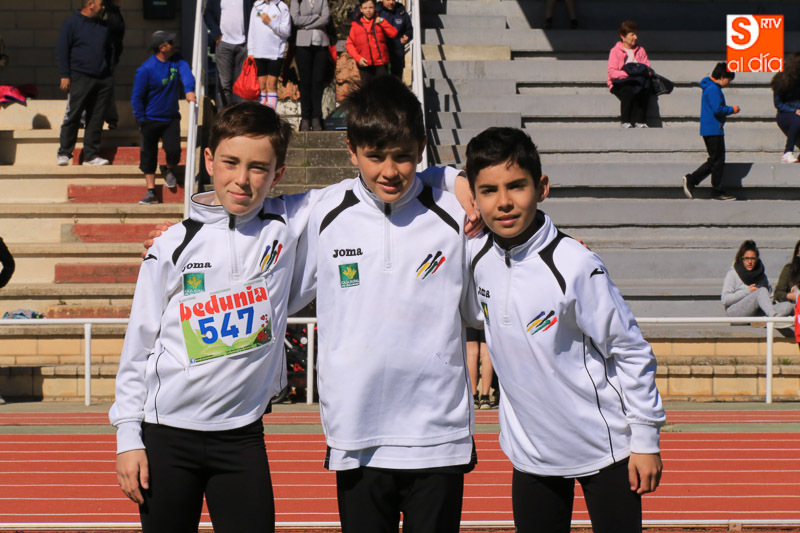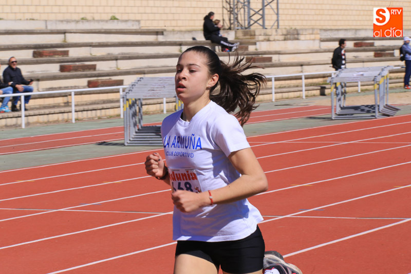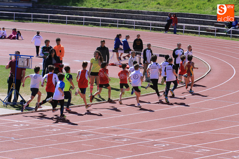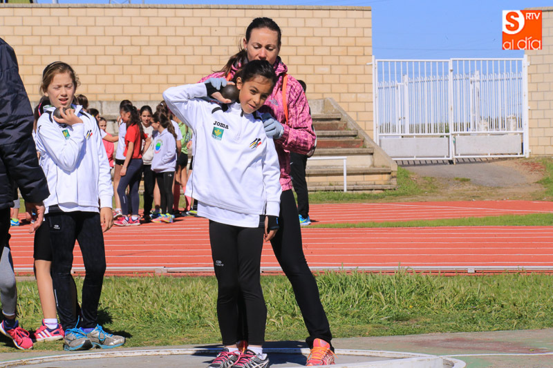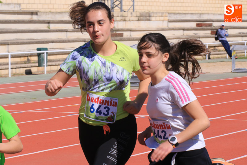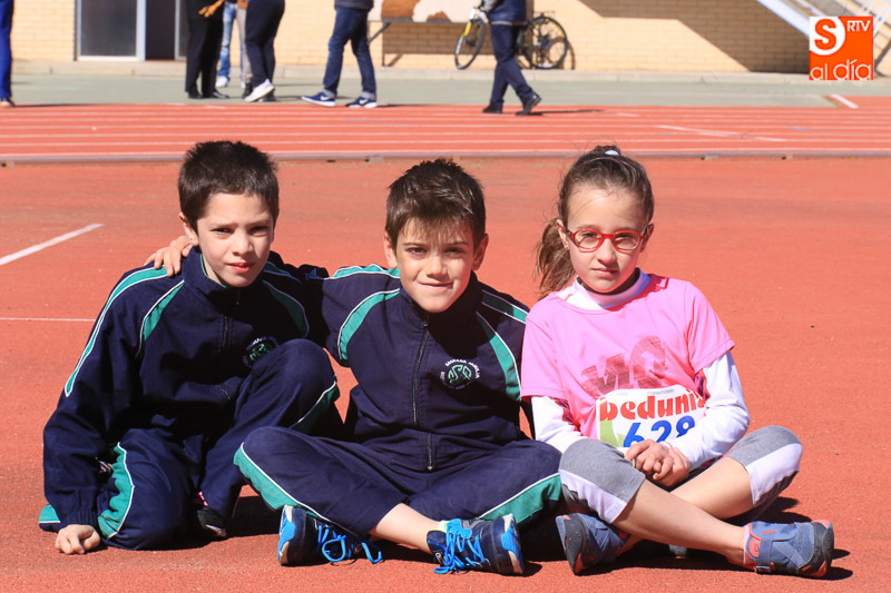 Han sido más de 300 niños y niñas representantes de los clubes, ayuntamientos y centros escolares salmantinos, de las categorías benjamín, alevín, infantil y cadete, los que se han dado cita esta mañana desde las 10:30h hasta las 14:00, para la disputa de las 24 pruebas programadas de las especialidades de velocidad, medio fondo, vallas, saltos, lanzamientos y el reparto de las 72 medallas que se otorgaban a los tres primeros clasificados de cada una de las pruebas celebradas.