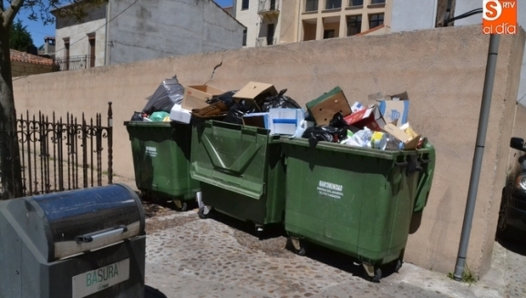 CIUDAD RODRIGO | Los contenedores de la Plazuela Dámaso Ledesma amanecen un domingo de puente más llenos de basura