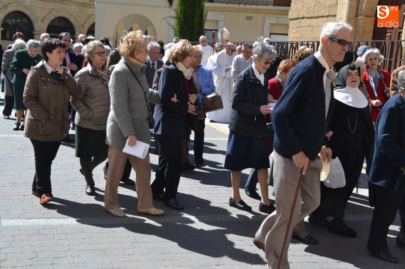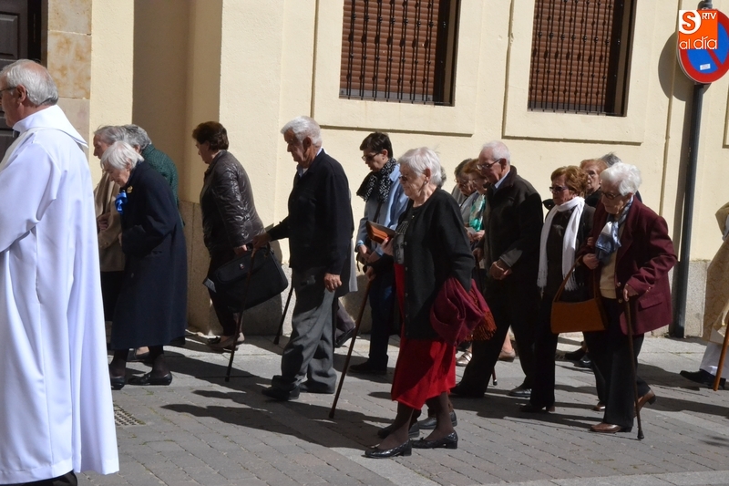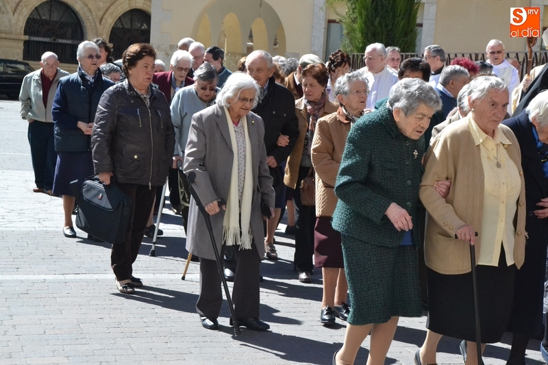 La procesión contó con la asistencia de unos cuantos sacerdotes diocesanos, con el Obispo de la Diócesis Raúl Berzosa al frente. Una vez se llegó a la Capilla de la Residencia, se celebró una Eucaristía, en la que participaron numerosas personas mayores, entre ellas residentes en centros asistenciales de la ciudad.