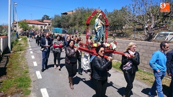 Los vecinos de Molinillo se reunieron ayer para celebrar la tradicional bendición de campos del primero de mayo. Tras la misa en la parroquia, se marchó en procesión con la imagen de la virgen María y se realizó l