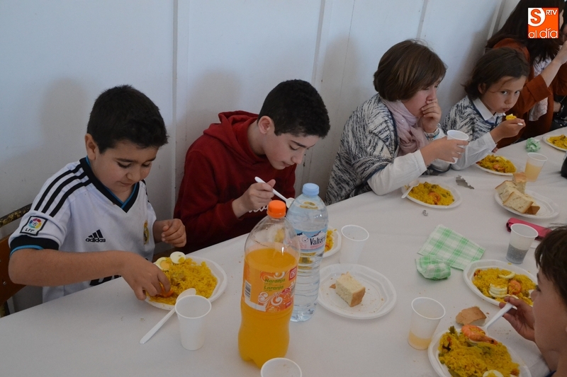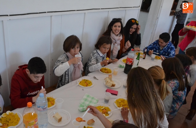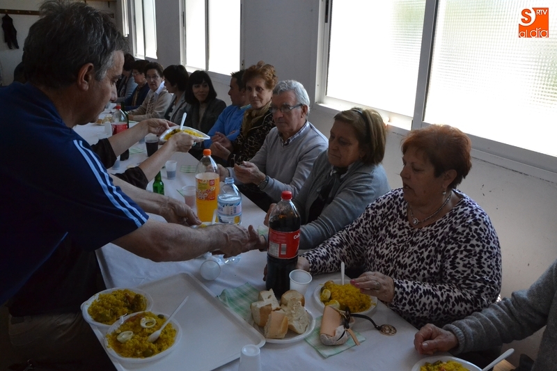 Allí degustaron una rica paella que fue preparada durante la mañana del lunes -en la parte trasera del recinto- por el chef José Luis Benito y su equipo de ayudantes. Junto a la paella también se pudo degustar chorizo frito, preparado por responsables de la Asociación de Vecinos de Ivanrey.