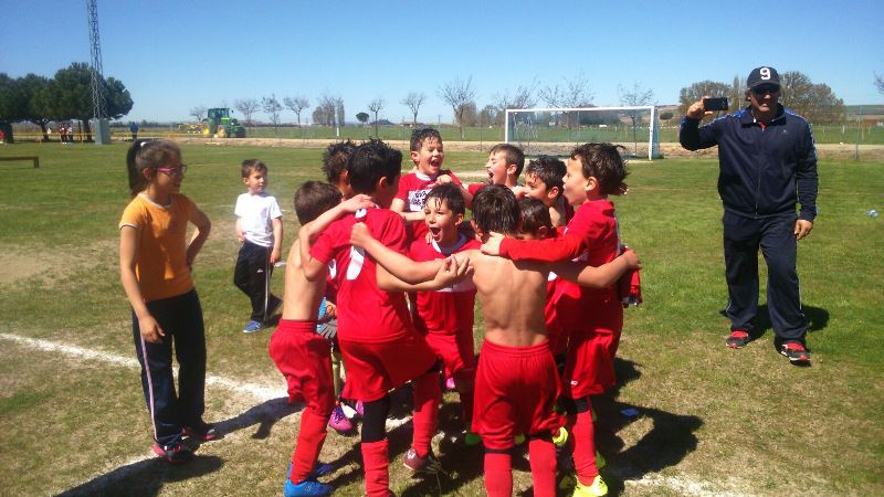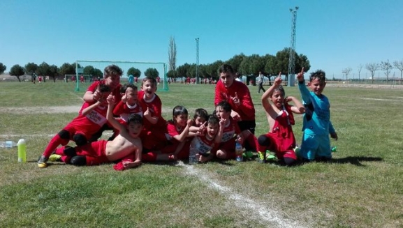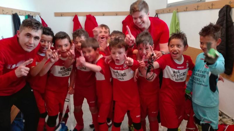 El equipo de fútbol de prebenjamines del Club Promesas de Villoria, a falta de dos partidos, ya se ha proclamado campeón de la liga 2015-16. Muy contentos, al final del partido lo celebraron como los grandes con baño conjunto de agua y brindis con champín, bebida infantil, sin olvidar la deportividad, que es lo importante en su edad, además de disfrutar practicando deporte y haciendo amigos de diferentes pueblos de la provincia.