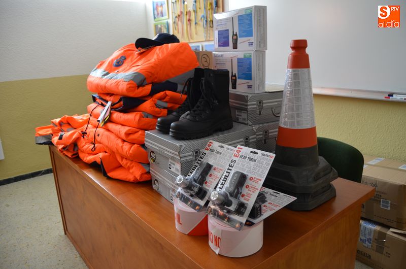 Juan Ángel Hernández, jefe de Protección Civil de Béjar ha presentado hoy el nuevo material que ha entregado la Junta de Castilla y León a esta asociación. Se trata de material de primera intervención, de vestuario, logística y transmisión, que viene a complementar el equipamiento que ha venido recibiendo en los últimos cinco años, en diferentes entregas.