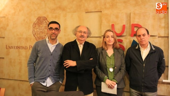 Las jornadas han arrancado esta tarde en el Aula de Grados de la UPSA con una mesa redonda titulada 'La poesía y la filosofía de frontera', moderada por la profesora Pilar Quiroga, en la que han participado los escritores Antonio Colinas y José Rui Teixeira y el profesor del IES Alonso Berruguete, César Augusto Ayuso. Posteriormente, el escritor Luis Frayle ha ofrecido la conferencia 'La poesía, un camino del conocimiento'.