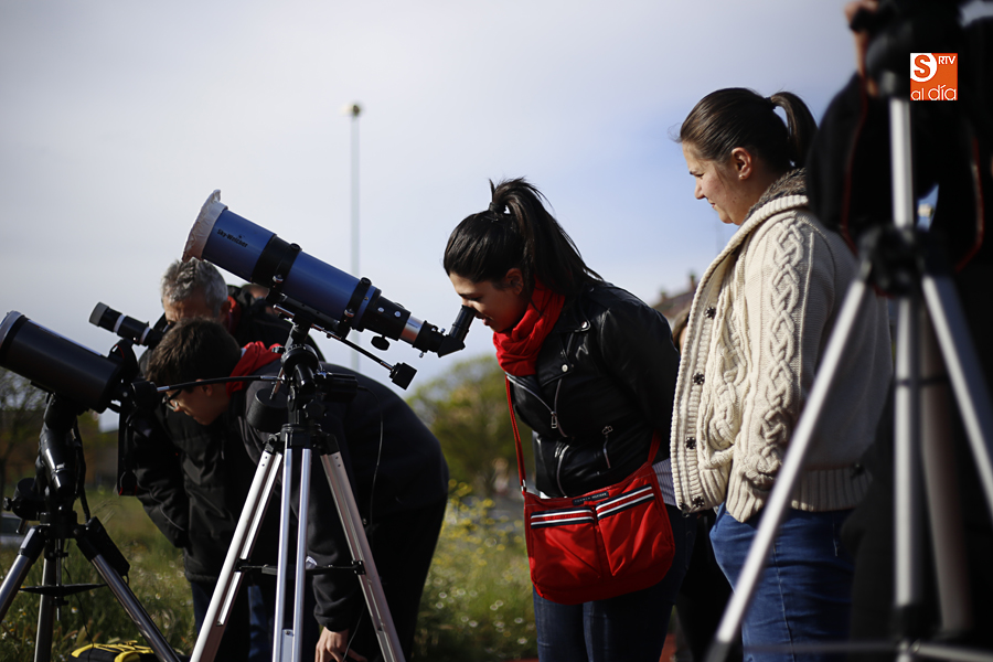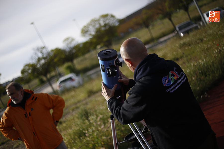 La Organización Salmantina de la Astronáutica y el Espacio ha organizado esta tarde una actividad abierta a la participación de todos los interesados para observar desde la calle Los Mozárabes cómo el planeta Mercurio se alineará entre la Tierra y el Sol. Este tránsito será visible hoy desde Salamanca, aunque desde la organización han querido advertir que el tránsito de Mercurio es un evento más bien discreto a pesar de ser un fenómeno de gran interés y belleza desde un punto de vista astronómico.