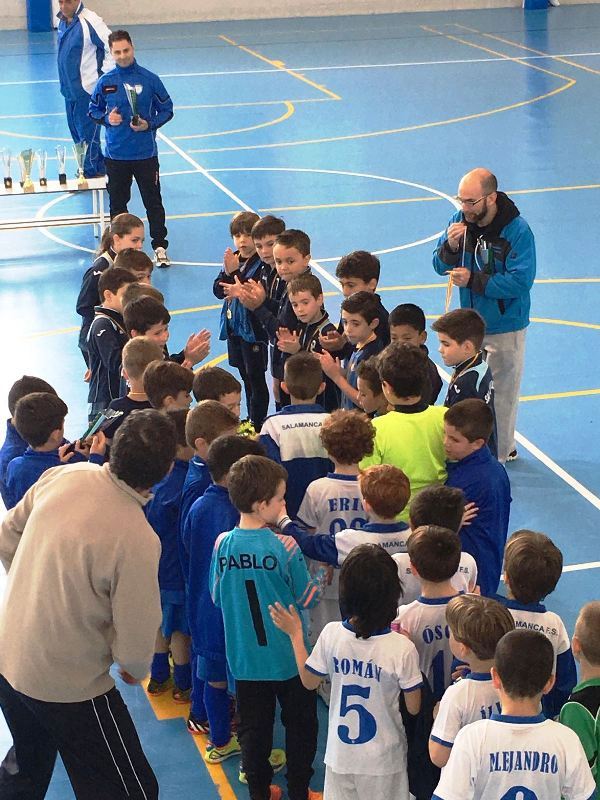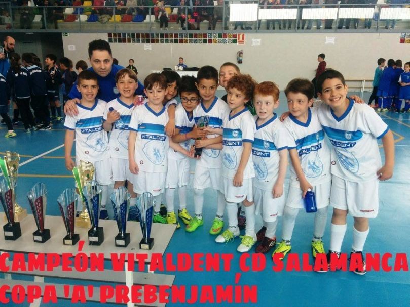 Este domingo tuvo lugar la II COPA PREBENJAMIN de fútbol sala, competición lúdica que ha sido organizada por el Club Deportivo Salamanca Fútbol Sala y Asafusa. En esta ocasión el formato ha ayudado a que todos los partidos hayan estado más igualados resultando campeones VITALDENT SALAMANCA FS en la Copa A, CGB ALDEATEJADA en la Copa B y CAJA DE AHORROS en la Copa C. También se entregaron los trofeos al Campeón y Subcampeón de Liga que fueron Maristas y Caja de Ahorros. El pabellón de ALDEATEJADA ha registrado en las gradas un aspecto espectacular como ya ocurriera durante todas las jornadas de Liga.