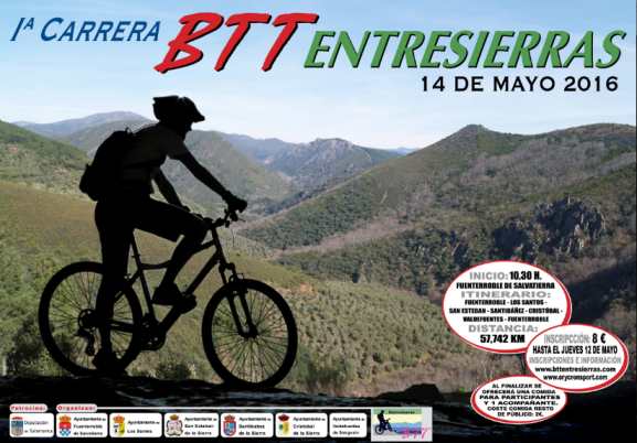 Los aficionados a la bicicleta de montaña podrán disfrutar este domingo de la Ruta 3 del circuito, llamada Circular Entresierras Integral de 9 que componen el circuito. Tiene una longitud de 57.742 kilómetros, dándose la salida a las 10:30 horas, partiendo de Fuenterroble de Salvatierra y pasando por Los Santos, San Esteban de la Sierra, Santibáñez de la Sierra, Cristóbal y Valdefuentes de Sangusín antes de regresar a Fuenterroble.