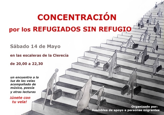 Con el lema Por los refugiados sin refugio, la Asamblea de Apoyo a Personas Migrantes pretende una vez más, manifestar su oposición al trato que las políticas europeas ejercen sobre personas que se ven obligadas a huir de sus países. Es una acción que se une a una iniciativa ciudadana que se llevará a cabo también en otras ciudades europeas.
