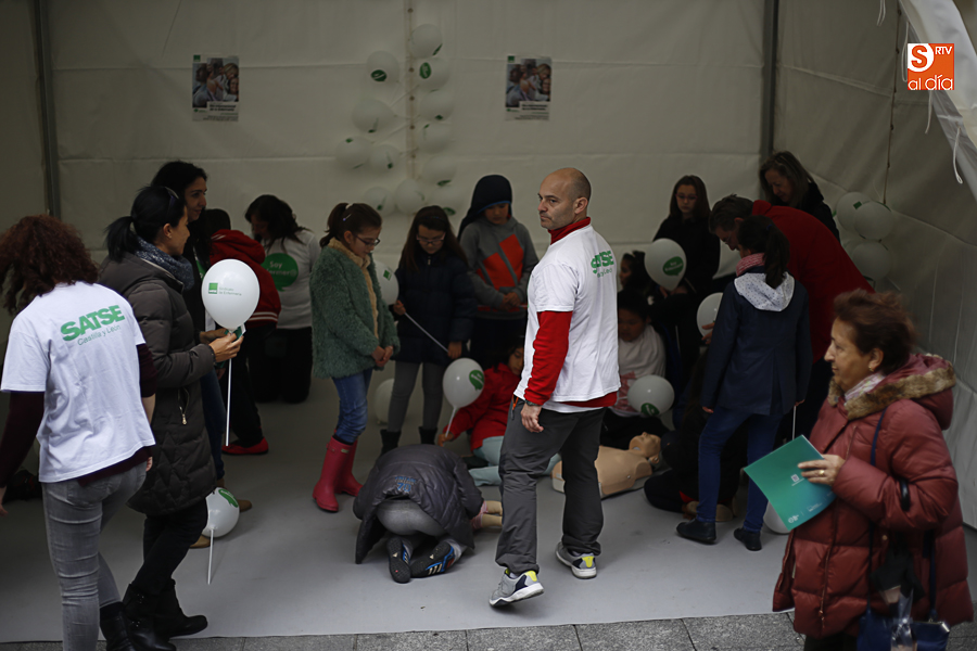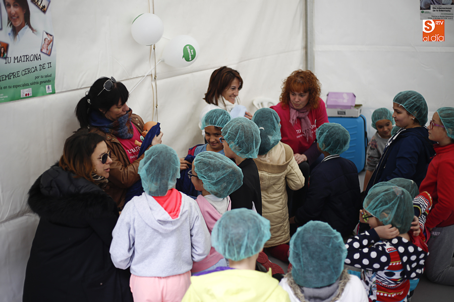 En este contexto, este jueves, en la plaza de los Bandos, se instalaba una carpa informativa en la que se han impartido talleres de educación sanitaria de la mano de las matronas y profesionales de enfermería, con la asistencia de escolares del Colegio Francisco de Vitoria. Los ciudadanos han podido conocer una ambulancia del 112, medir su glucemia y la tensión arterial.