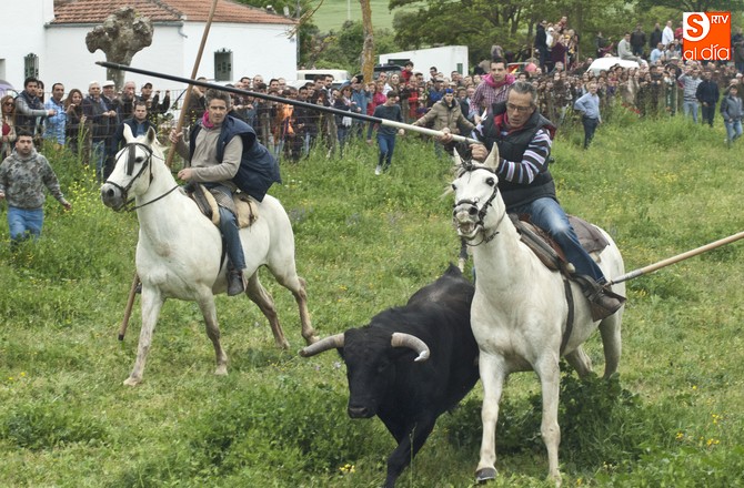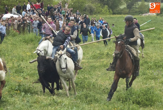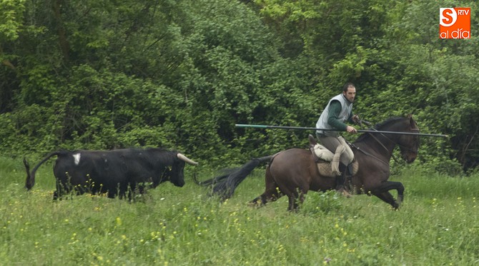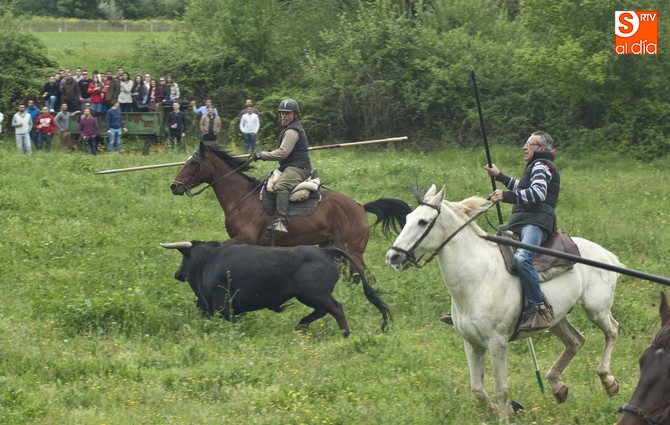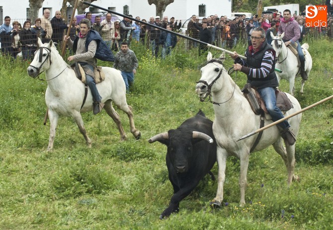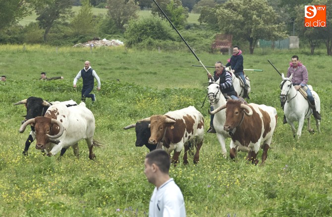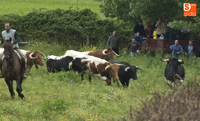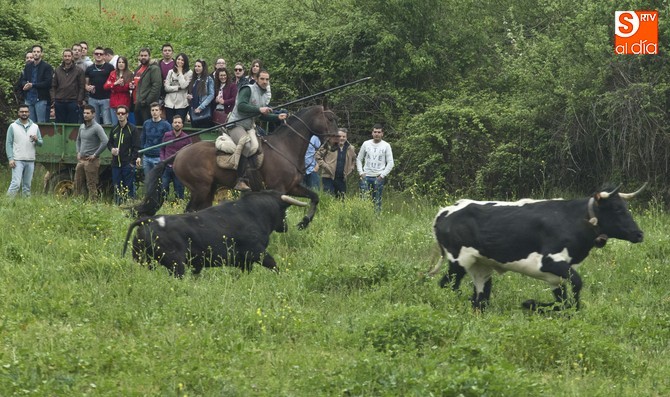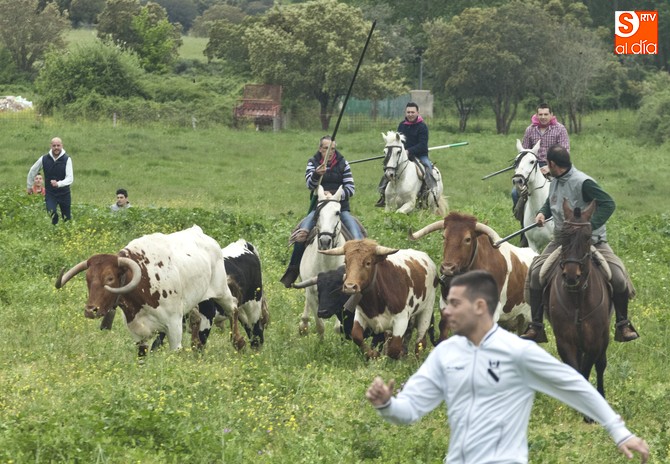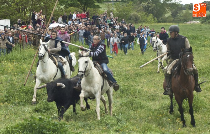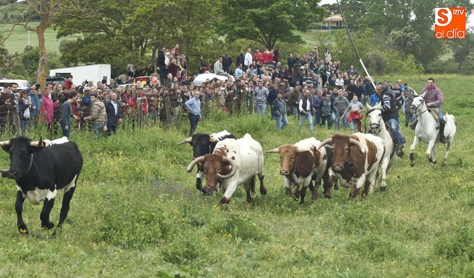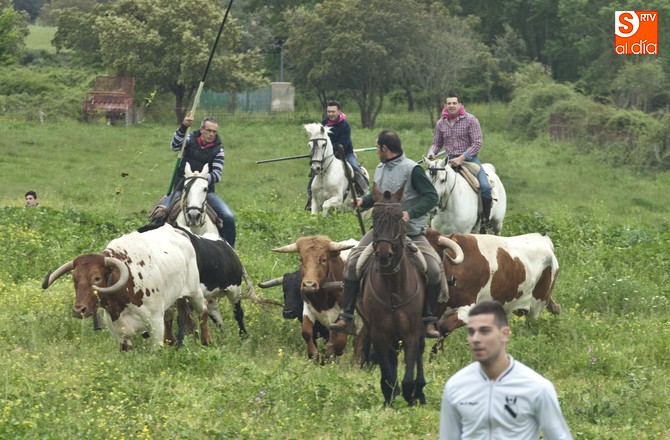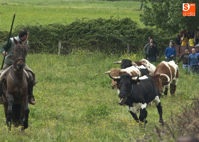 La sesión comenzó con el encierro a caballo, donde el primer intento para sacar al ganado del prao fue infructuoso, volviéndose para atrás. En este punto, hay que resaltar que el utrero con el que contaron las fiestas llegó a amagar con saltar el alambrado, pero al final los caballistas con la guía de los cabestros también consiguieron meterlo.