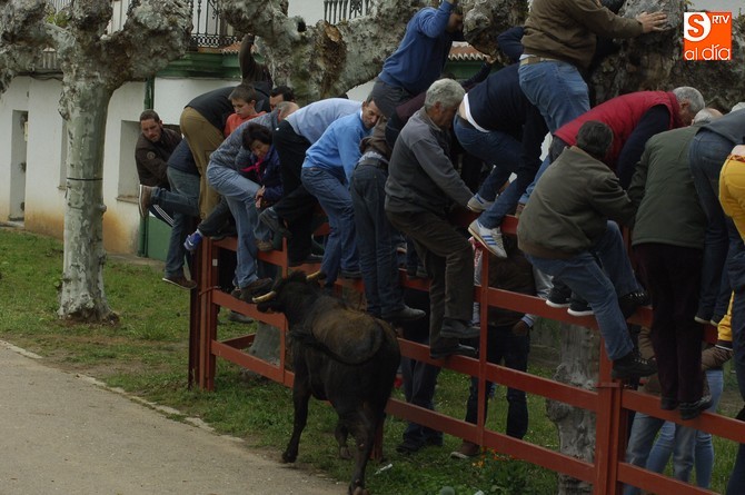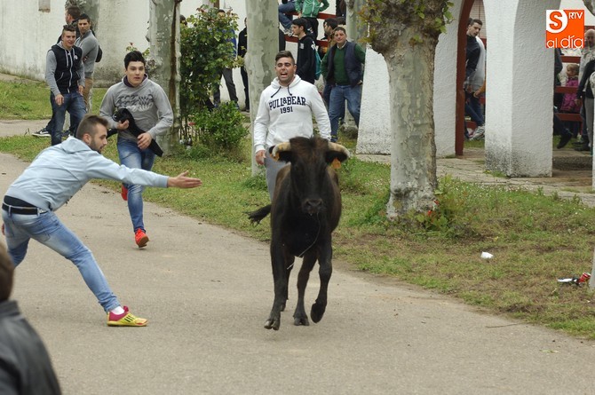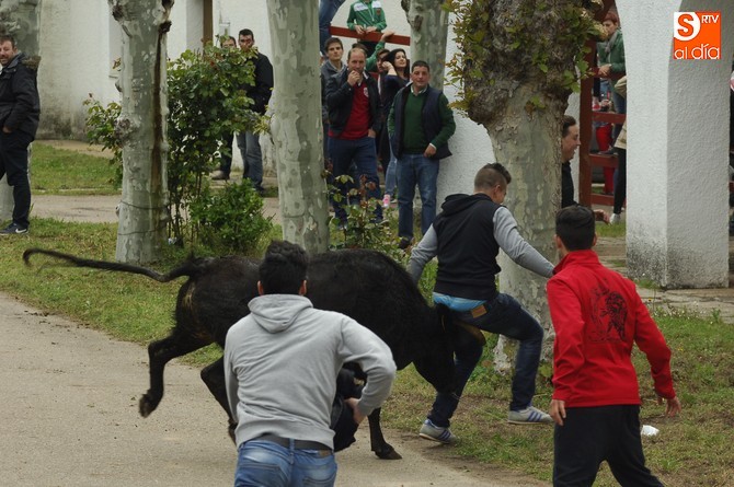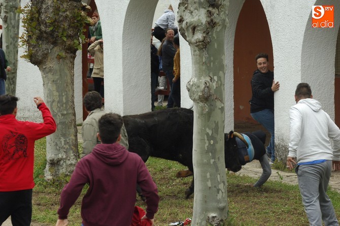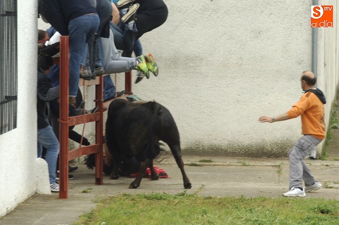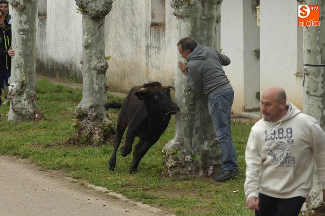 Posteriormente, fue turno para la capea, en este caso con formato abierto en la calle, donde se fueron soltando de una en una las vacas de Santos Alcalde así como el mencionado utrero. Esta capea fue muy entretenida, con varios sustos y revolcones, una par de ellos algo más acrobáticos (pero sin daños de gravedad), para completar una tarde muy animada con la climatología perfecta: nublado, pero con buena temperatura y sin riesgo de lluvia.