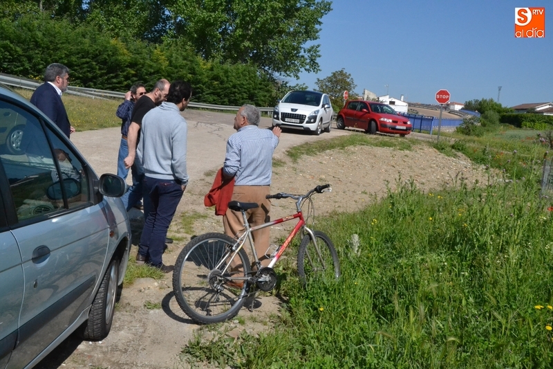 Tras hablar a pie de Calleja con unos cuantos vecinos, Juan Tomás Muñoz y Domingo Benito se fueron con unos cuantos 'deberes'. Uno de los problemas que parece que tendrá una solución más rápida y sencilla está justo al inicio de la Calleja. Se trata concretamente de la zona de la cuneta izquierda -en el tramo que va hasta el monolito- que fue elevada durante las semanas iniciales del año (echándole más tierra) para facilitar la salida del encierro a caballo desde la bajada del Teso de Valhondo hacia la Avenida Conde de Foxá.