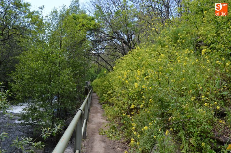 El paseo por la Ruta de las fábricas textiles depara algunas sorpresas a quienes lo recorren después de los días de lluvia de las últimas semanas, un río pletórico serpentea rugiendo y la naturaleza reclama su lugar abriéndose paso a través del cemento de la pasarela en un intento por reconquistar el terreno perdido, una exuberancia de color y movimiento acompañada de la música del agua y el olor a tierra mojada.