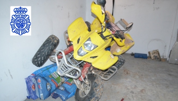 En una plaza de garaje que tenía alquilada se ha intervenido un quad de los denunciados, además de un casco, monos de moto y numerosa herramienta, parte de la cual ha sido entregada a los denunciantes como legítimos propietarios, a disposición de la autoridad judicial.