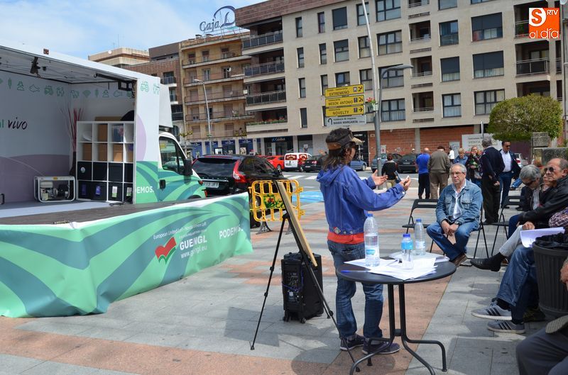 En la mañana de ayer una caravana informativa de Podemos ha sido instalada en la Plaza de España de Béjar, frente al parque municipal, donde a pie de calle se ha explicado a los ciudadanos el programa electoral de la nueva formación política.
