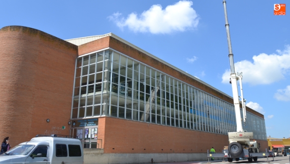 Operarios del Ayuntamiento de Peñaranda han trabajado desde primeras horas de la mañana de este miércoles en una nueva reparación sobre la cubierta del pabellón municipal Miguel Ángel Jiménez Barcala.