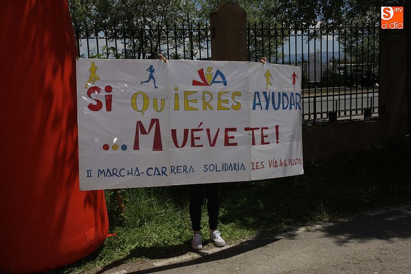 La buena temperatura y los cielos despejados acompañaron la celebración de la carrera solidaria 'Gotas para Níger' que organizó el IES Vía de la Plata de Guijuelo. Casi 250 estudiantes del centro tomaron la salida ubicada en el parque de La Dehesa, aunque pocos participantes lograron cruzar la meta.