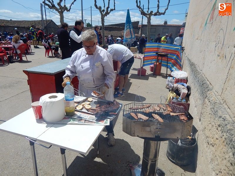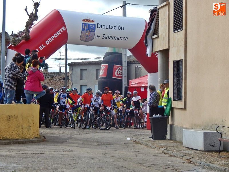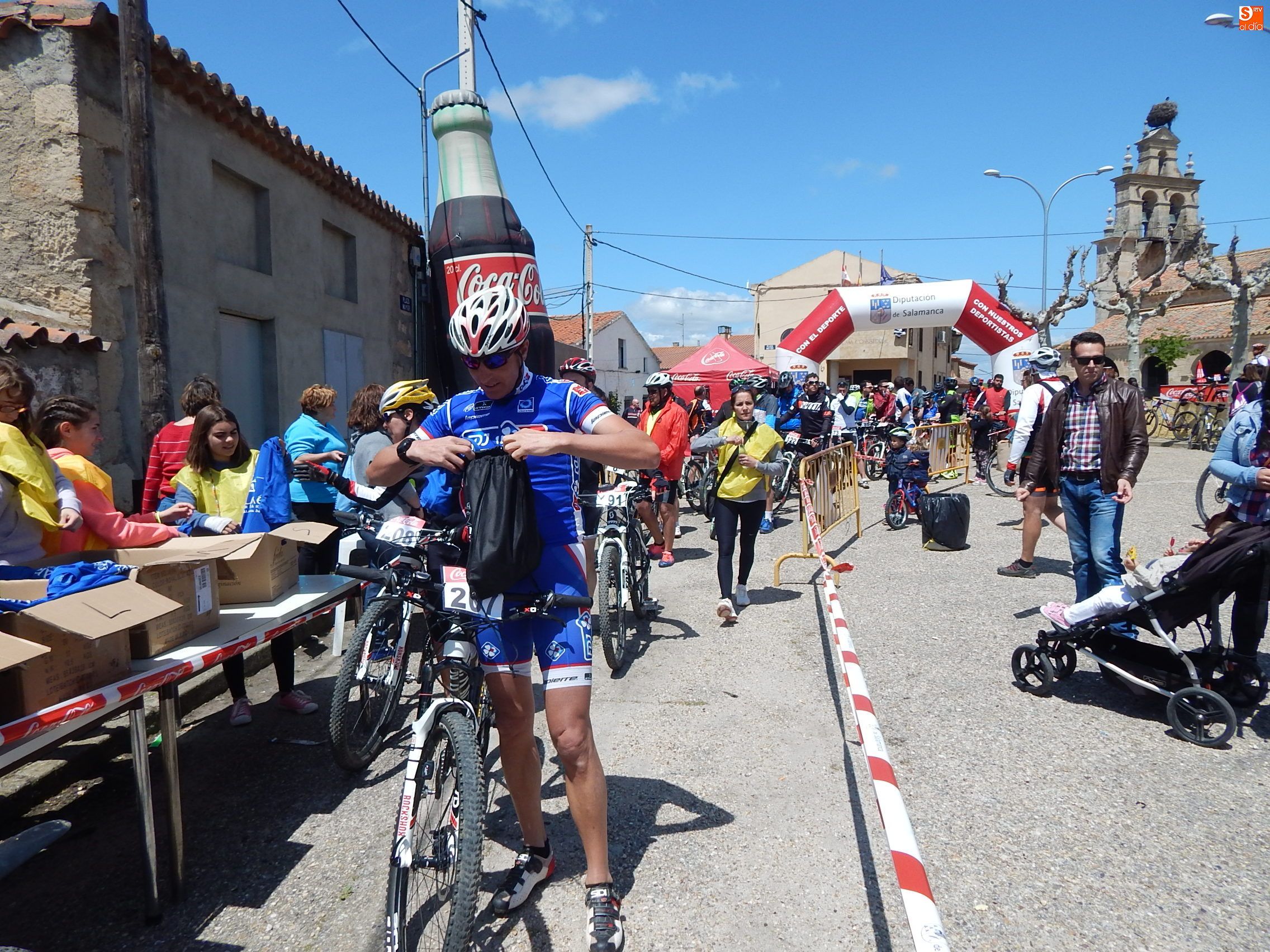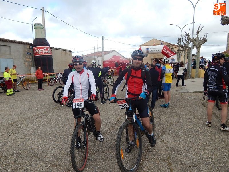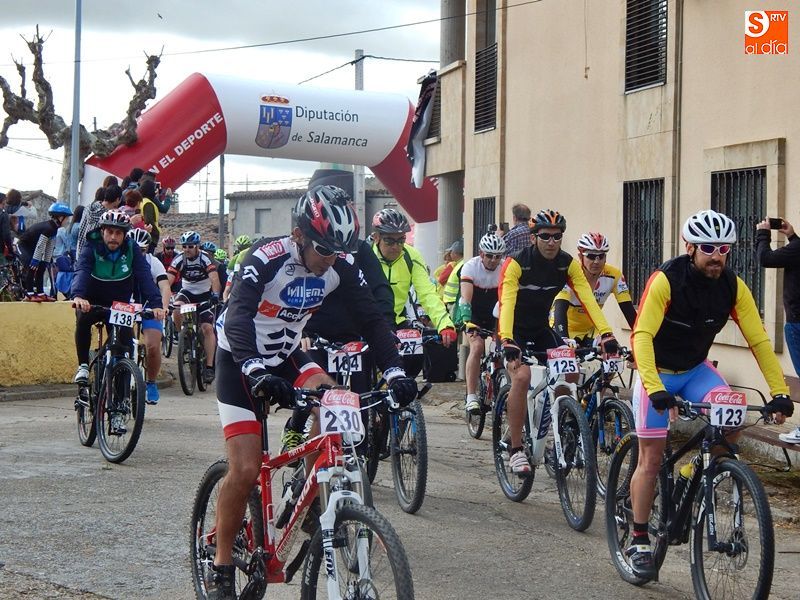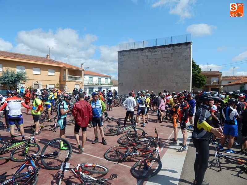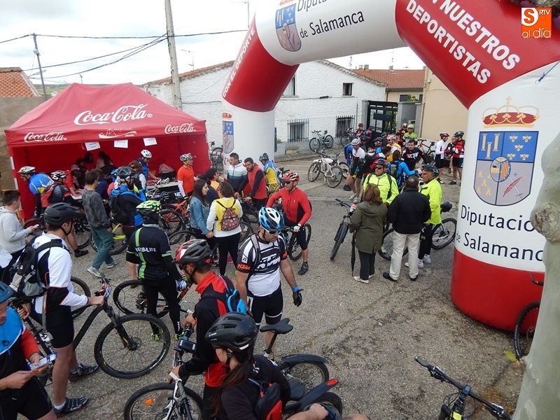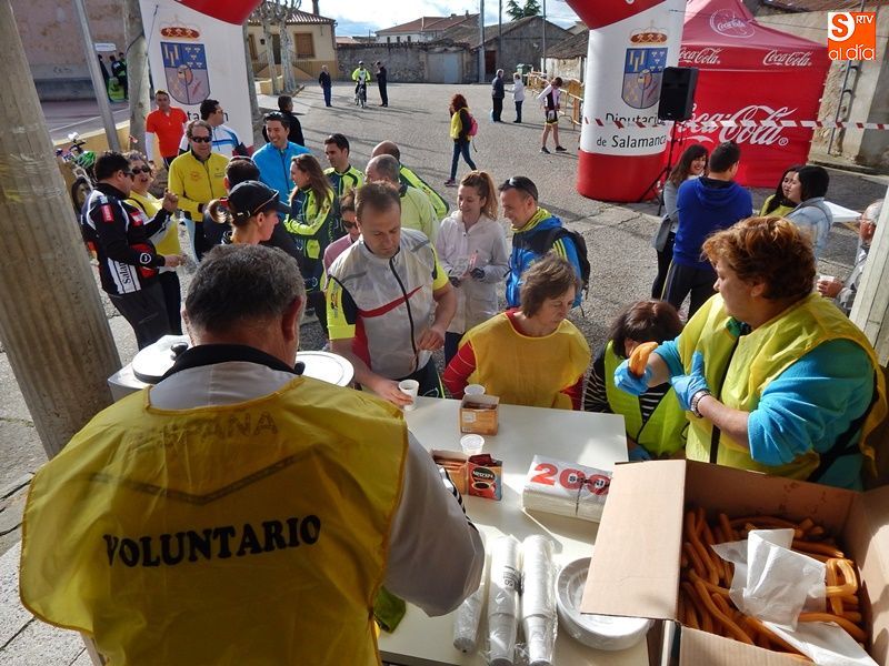 Desde primera hora de la mañana, la Plaza Mayor de Almenara se ha convertido en punto de encuentro para recibir a los participantes, entregar los dorsales acreditativos y, por invitación del Ayuntamiento, tomar un café con churros antes de tomar la salida. El pelotón, que ha llevado un ritmo superior incluso al previsto a lo largo de todo el recorrido, tomaba la salida en dirección a Torresmenudas, para continuar el trazado hasta Aldearrodrigo y Valdelosa, punto de avituallamiento donde los corredores han podido reponer fuerzas para continuar hasta Zamayón, San Pelayo de Guareña y, desde allí, de nuevo hasta Almenara de Tormes.