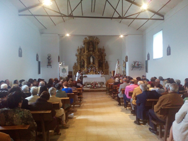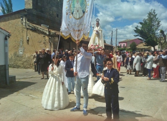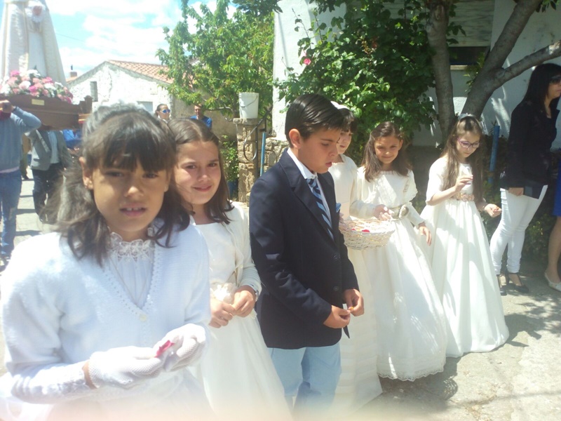 ucaristía en la iglesia de San Pedro y San Fernando, la imagen de la Virgen ha salido en procesión escoltada por los vecinos y, en especial, por los niños que este año han recibido la Primera Comunión.