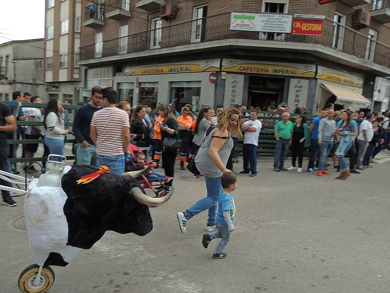 Los más pequeños vivieron también en Vitigudino, ayer sábado, su particular toro de cajón. Antes de que saltara 'Pepito' a las calles, los niños tuvieron sus carreras con los 'astados' de Encierros Infantiles Huertos, que sembraron el delirio y sembraron de ambiente las calles antes del festejo serio.