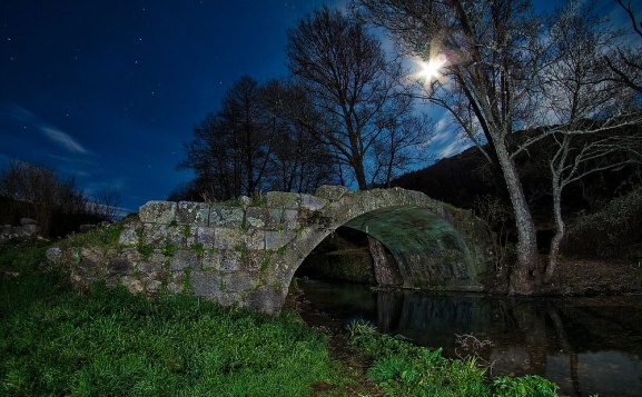 Hubo que esperar a la noche para que despertaran los prodigios del camino. Entre el vientre de tus piedras y el agua vi pasar, sigilosamente, el tiempo. En el cielo, las estrellas bailaban pintadas por Kandinsky.