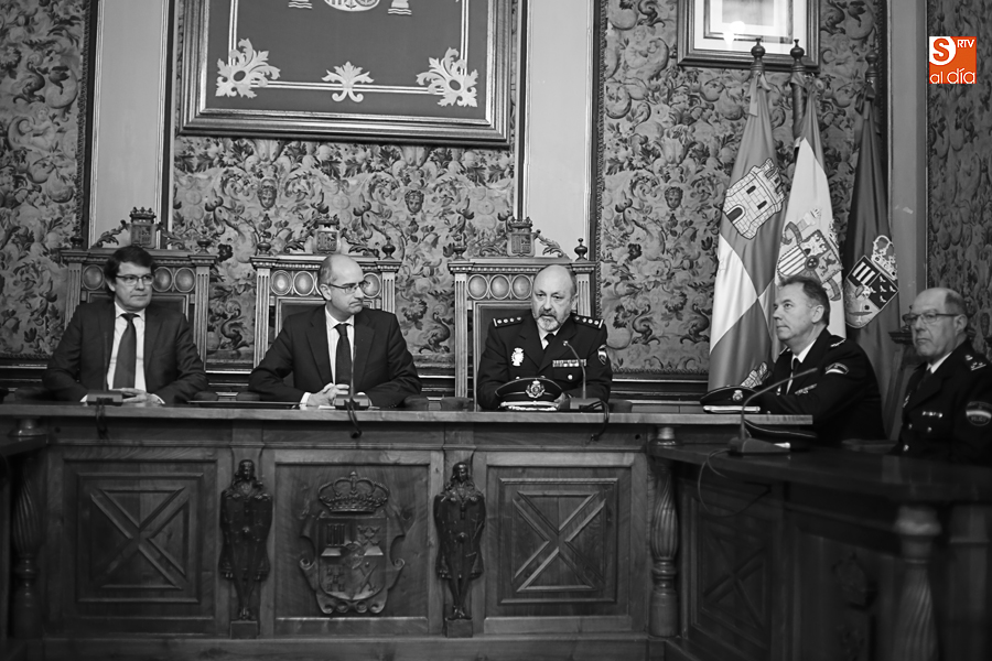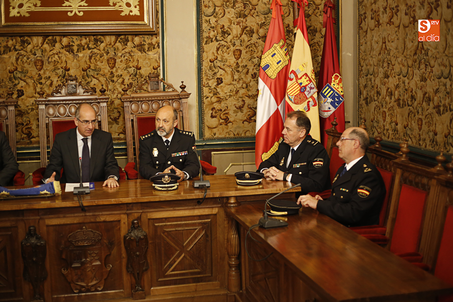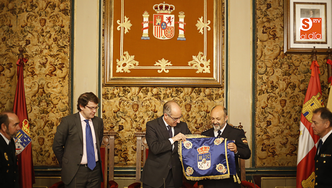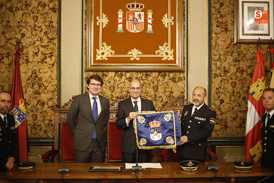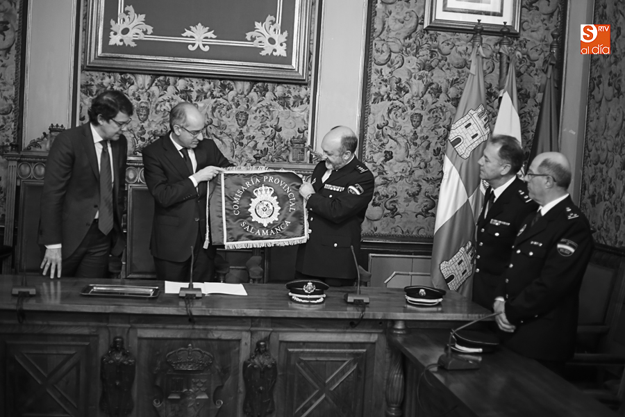 El presidente de la Diputación de Salamanca, Javier Iglesias, ha entregado al Comisario Jefe, Francisco Martín, el Guión de la Provincia (Bandera) a la Comisaría Provincial de Salamanca, en una ceremonia celebrada en el salón de plenos de la institución provincial.