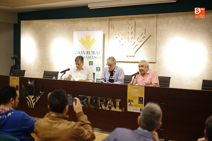 'El deporte y su mundo' es el título de la conferencia que han impartido este lunes los periodistas Santiago Segurola y Javier Ares, en un acto organizado por la Asociación Salmantina de la Prensa Deportiva y que ha tenido lugar en el salón de actos de Caja Rural de Salamanca. S