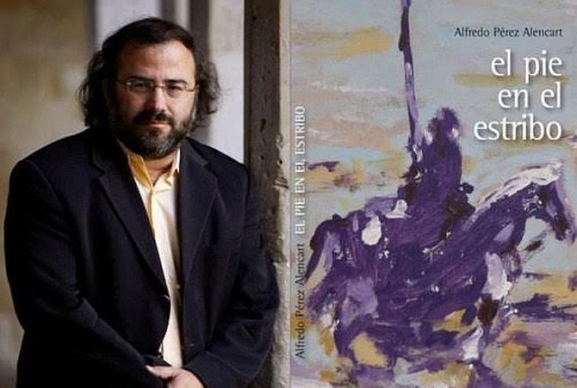 Sin embargo, nace con voluntad de celebración y como homenaje a Cervantes, desde tierras salmantinas, donde aún se cree y se trabaja por la cultura como puente de unión entre los pueblos, "El pie en el estribo", un poemario del poeta peruano-español Alfredo Pérez Alencart (Puerto Maldonado, Perú, 1962). Acompañan y dan luz a este bello y alimenticio libro las ilustraciones de Miguel Elías, y toma el título de la carta que Cervantes envió en vida a su benefactor y mecenas don Pedro Fernández de Castro, VII Conde de Lemos, preliminar del Persiles y Segismunda, cuando dice: «Puesto ya el pie en el estribo,/con las ansias de la muerte, / gran señor, ésta te escribo». Aunque en circunstancias distintas y más saludables, cuatrocientos años después, el autor de este poemario, el poeta Alfredo Pérez Alencart, se adentra en un viaje por la extensa obra cervantina para, en un ejercicio de meditación inusual, presentarnos un universo poético en el cual resplandece el amor, fruto de un profundo sentimiento cristiano, solidario y fraternal hacia el género humano.